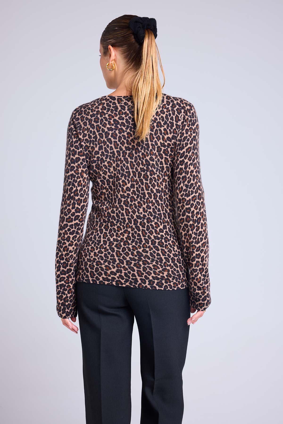 Le pull LETIZIA allie l’audace d’un imprimé léopard intégral à la douceur incomparable du cachemire.