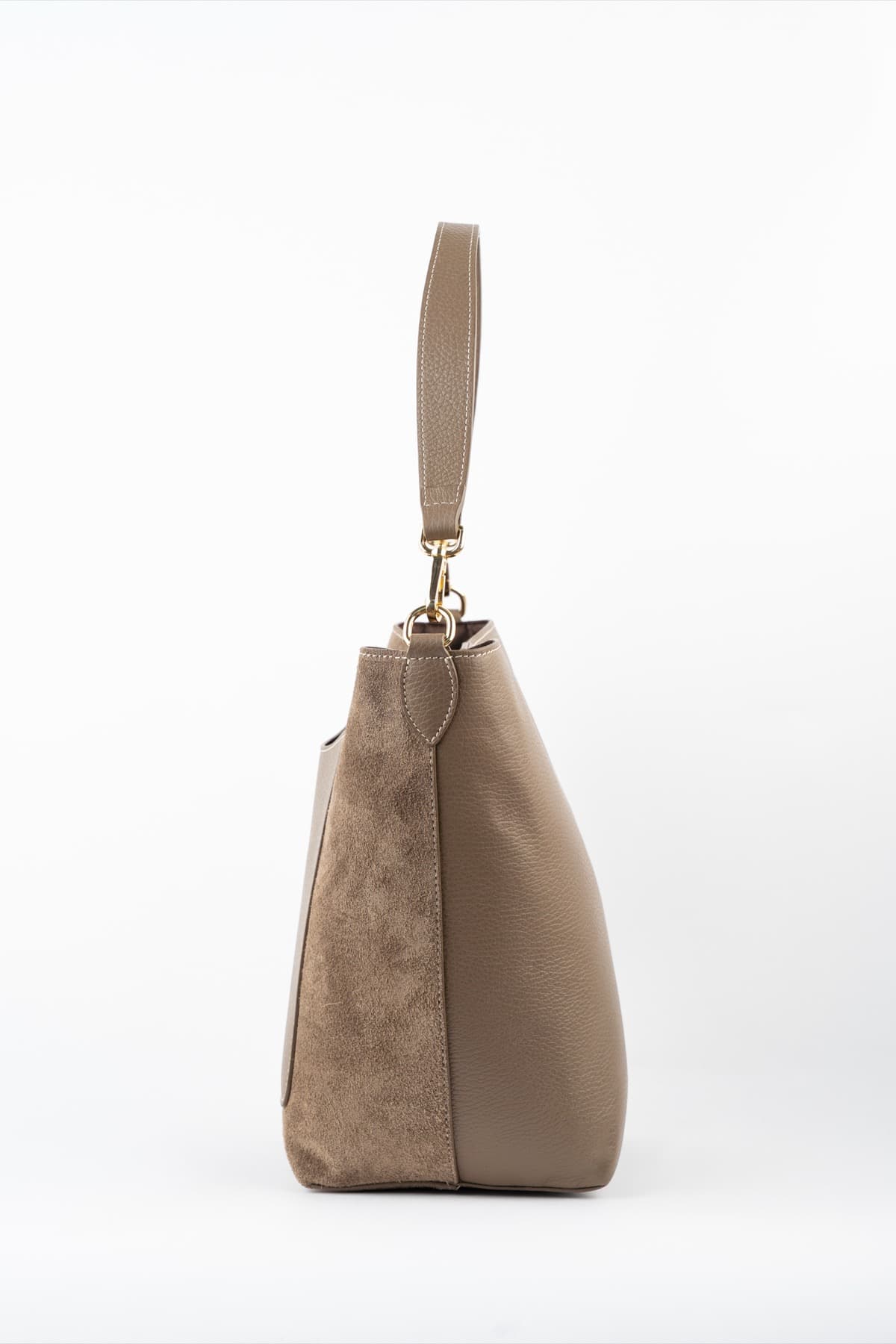 Découvrez une pièce d’exception : LEYLA, alliance parfaite de goût et de style. Le design de ce sac à main est sublimé par le contraste du cuir suède avec les empiècements en cuir de vachette grainé. Cette double texture et sa structure souple sont maintenus par une base définie et des lignes minimalistes. Il se ferme discrètement par un bouton aimanté. Porté main par sa anse courte ou en bandoulière grâce à sa sangle addtionnelle, ajustable et amovible, il est le compagnon idéal de votre quotidien.