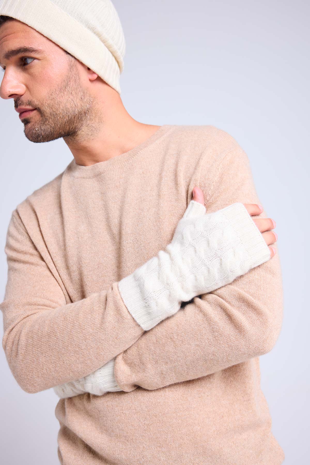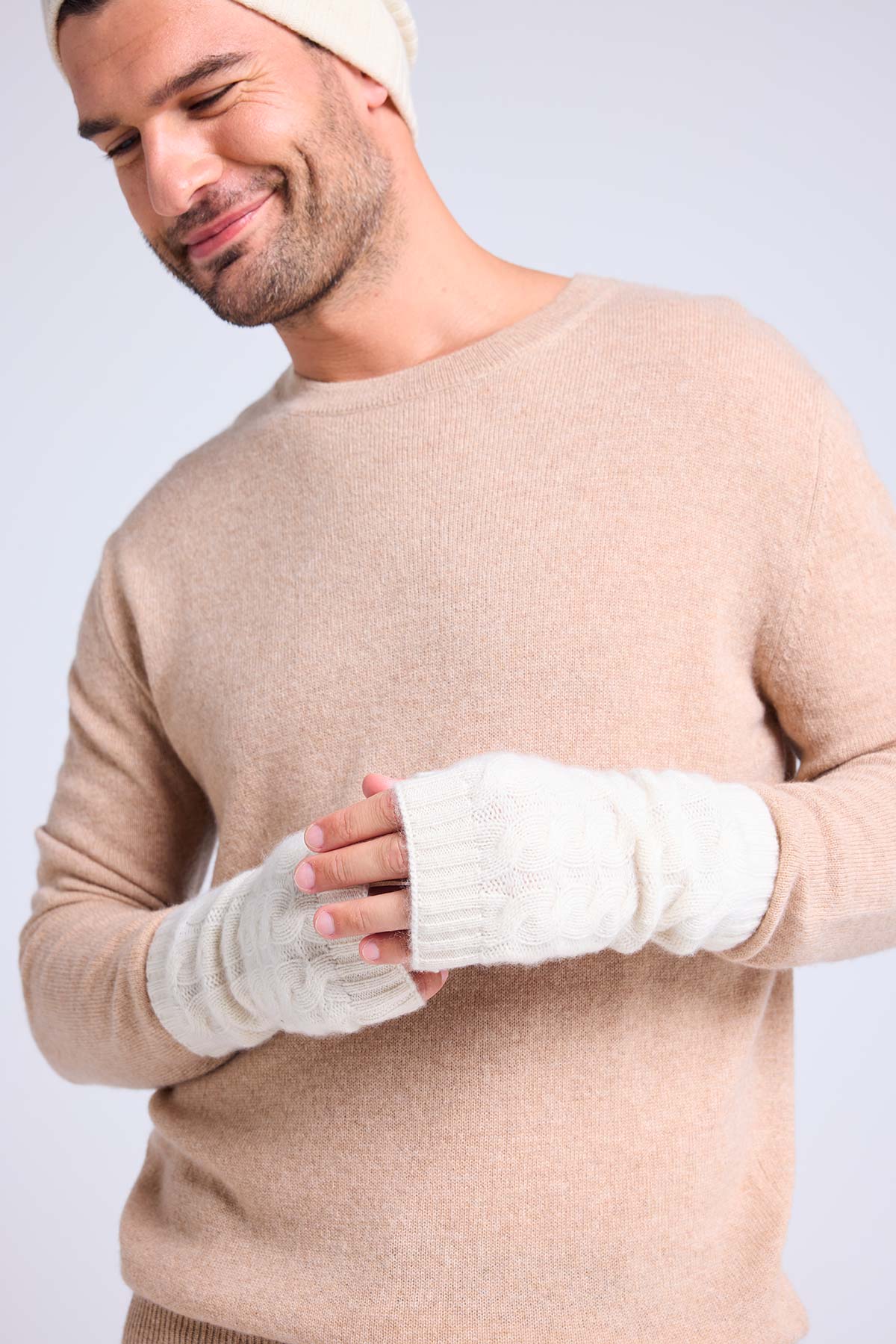 Confectionnés en 100% cachemire ultra doux, les mitaines maison héritage garderont vos mains au chaud tout au long de l’hiver. Tricotées en côtes et ornées de torsades en relief et en ton sur ton, elles apporteront délicatesse et élégance à vos sorties. Elles s’accompagnent de notre écharpe MH-001, Irma ou Arizona en 100% cachemire de la même collection. Disponibles dans plusieurs coloris, tentez les!