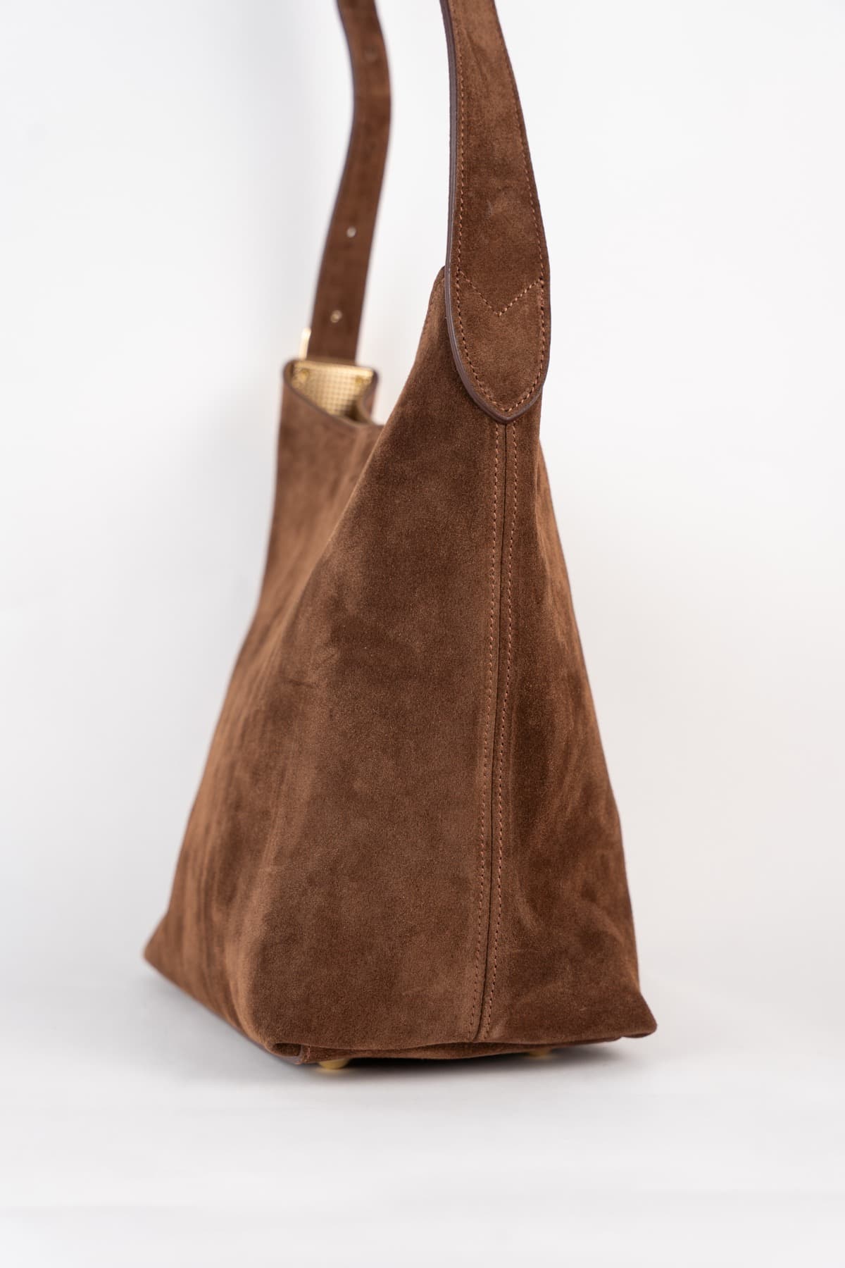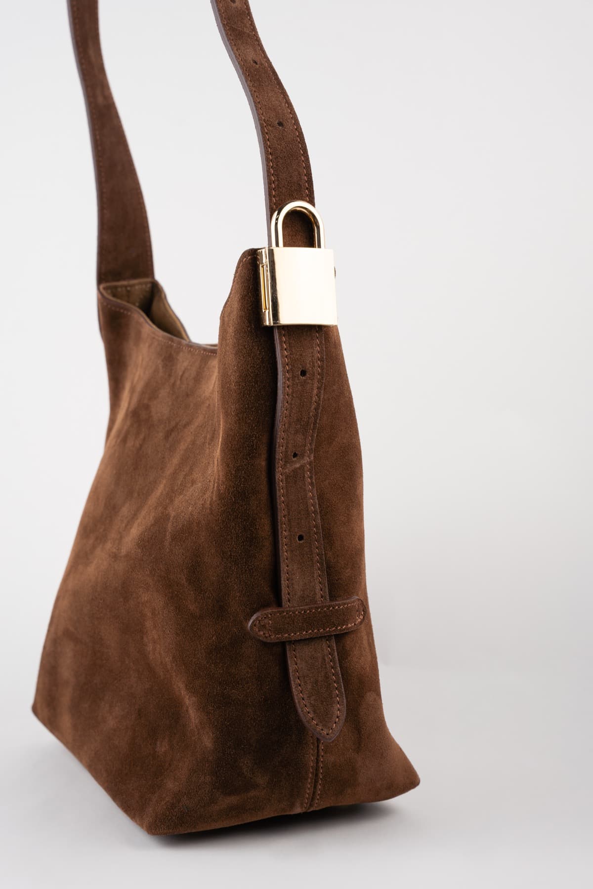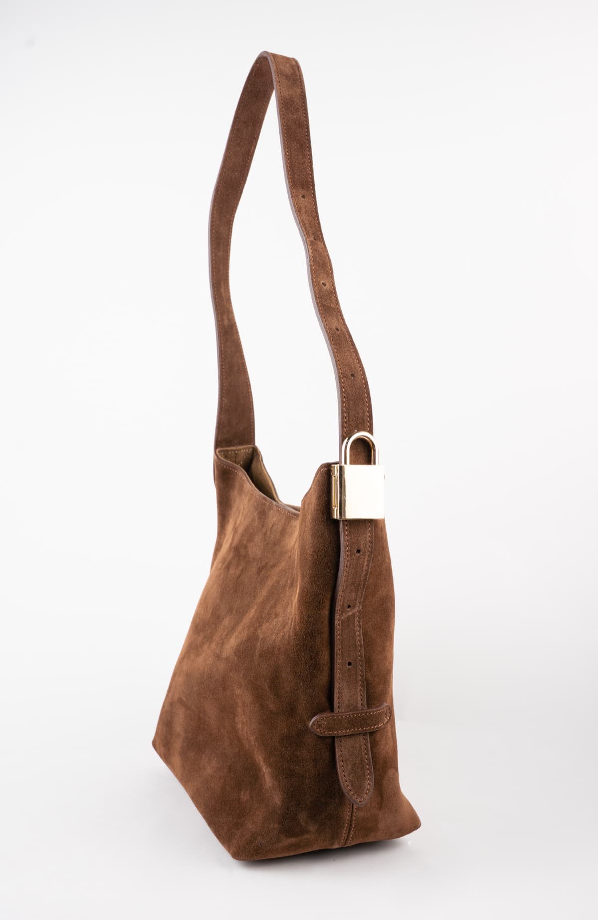 Ce sac LOK porté épaule en cuir de vachette suède est l’accessoire signature de l’élégance quotidienne, vous aimerez la sophistication du détail avec sa boucle verrou, ainsi que sa praticité. Il possède une pochette intérieure zippée et détachable. Dimensions : Longeur 23 cm x Hauteur 24 cm x Profondeur 14 cm.