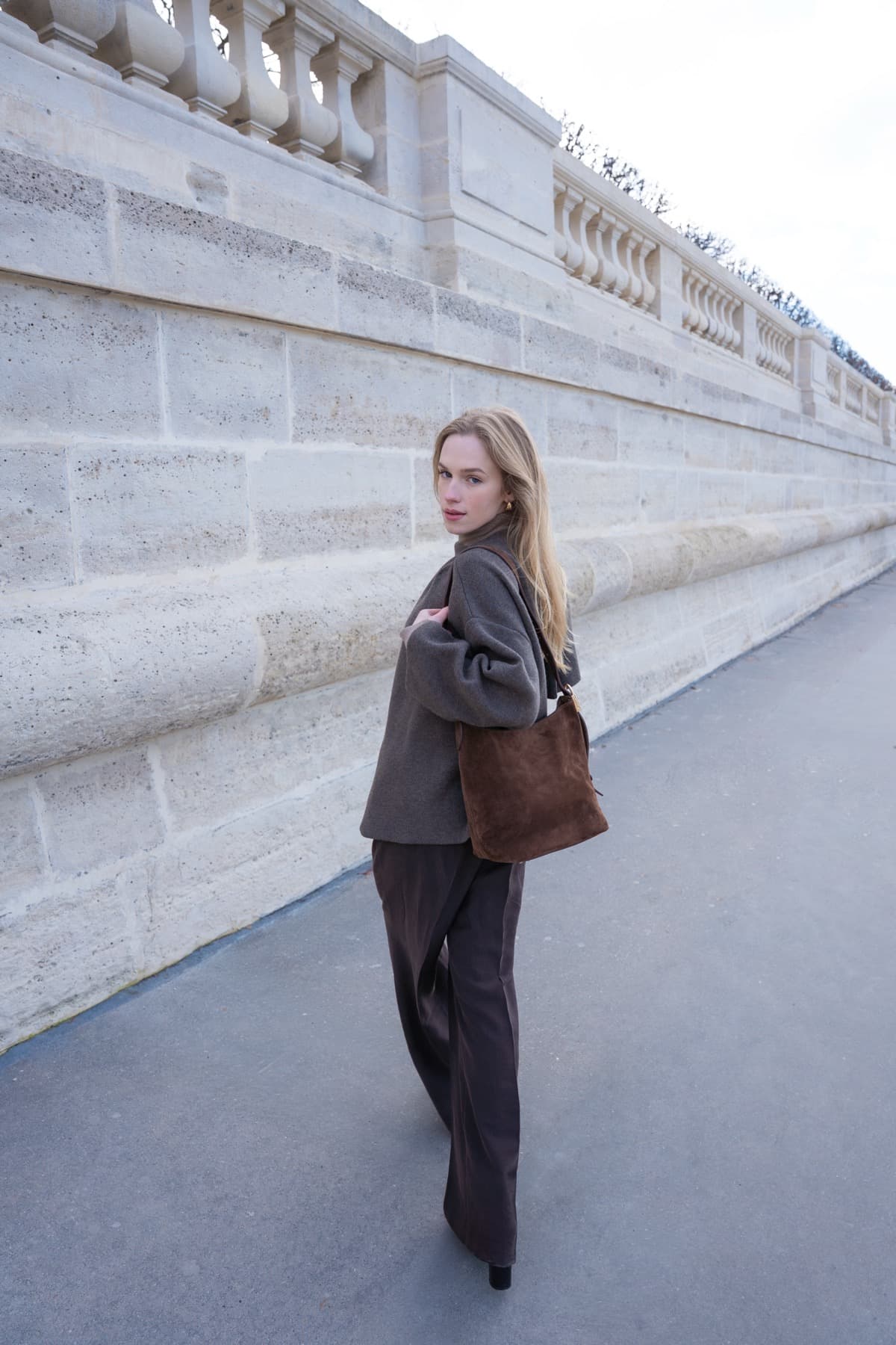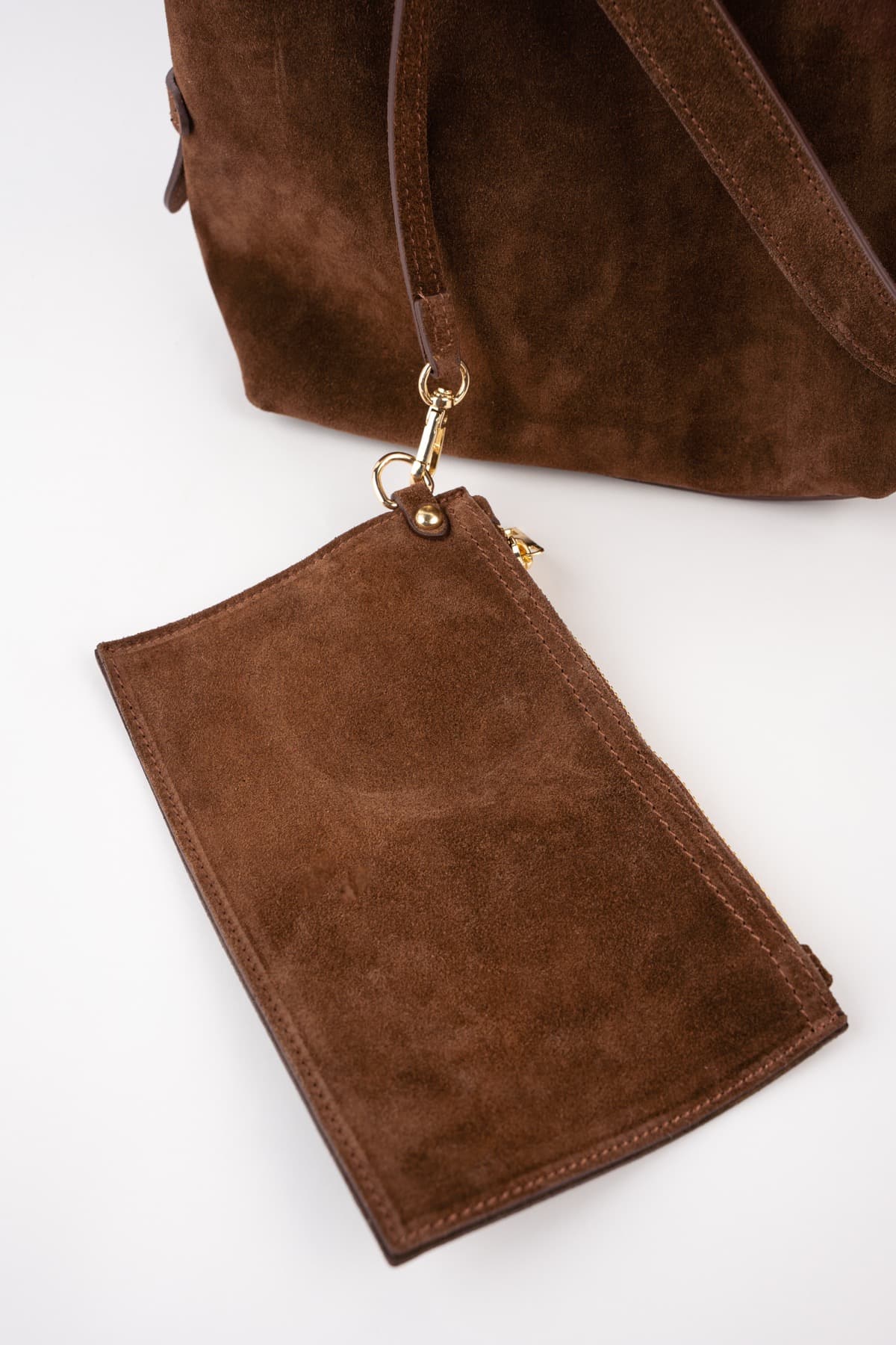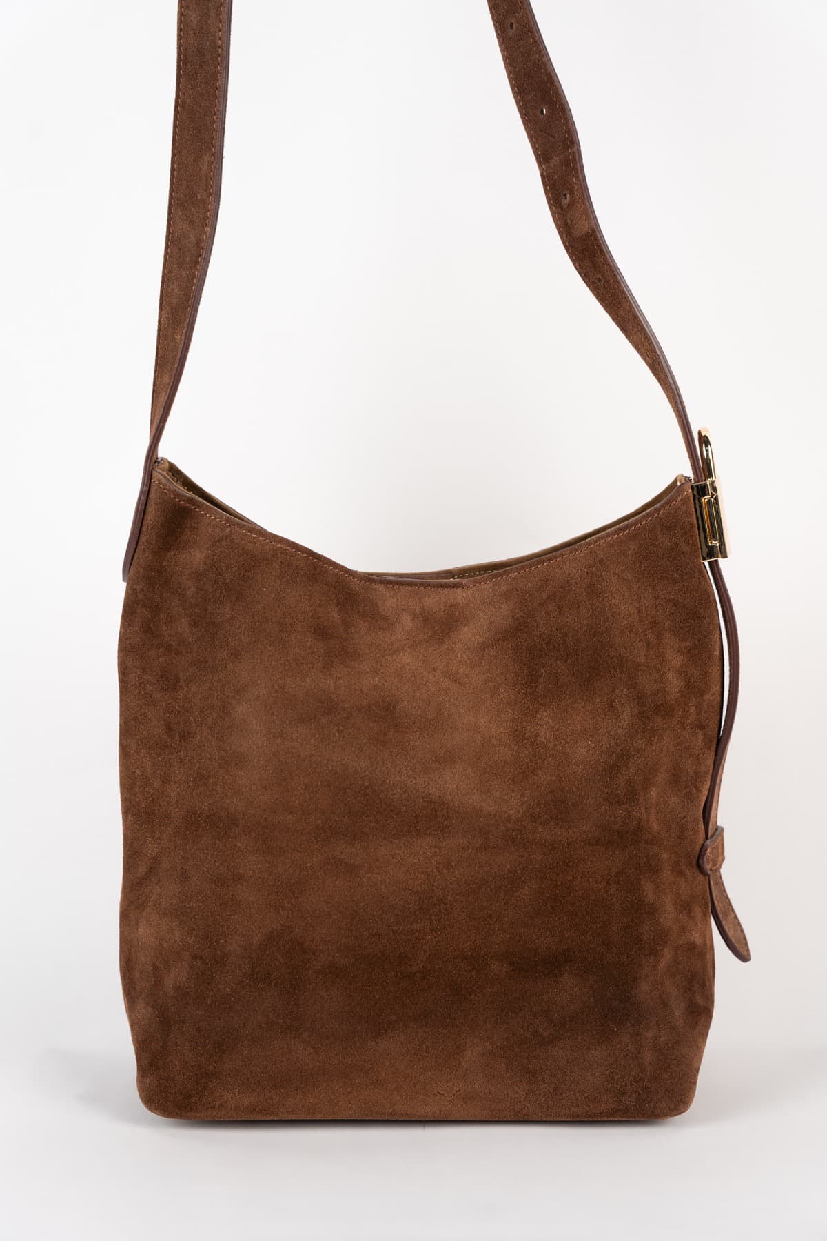 Ce sac LOK porté épaule en cuir de vachette suède est l’accessoire signature de l’élégance quotidienne, vous aimerez la sophistication du détail avec sa boucle verrou, ainsi que sa praticité. Il possède une pochette intérieure zippée et détachable. Dimensions : Longeur 23 cm x Hauteur 24 cm x Profondeur 14 cm.
