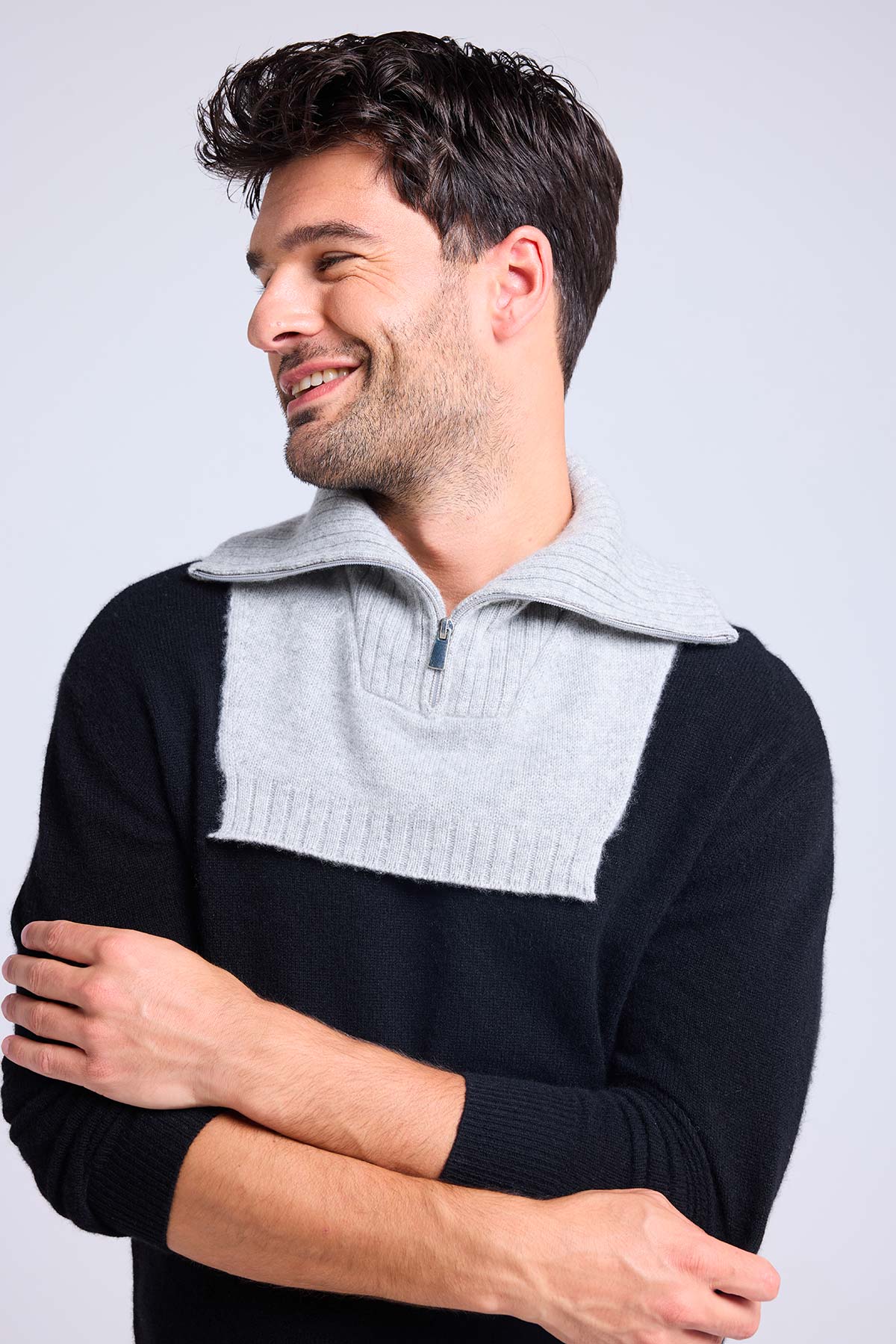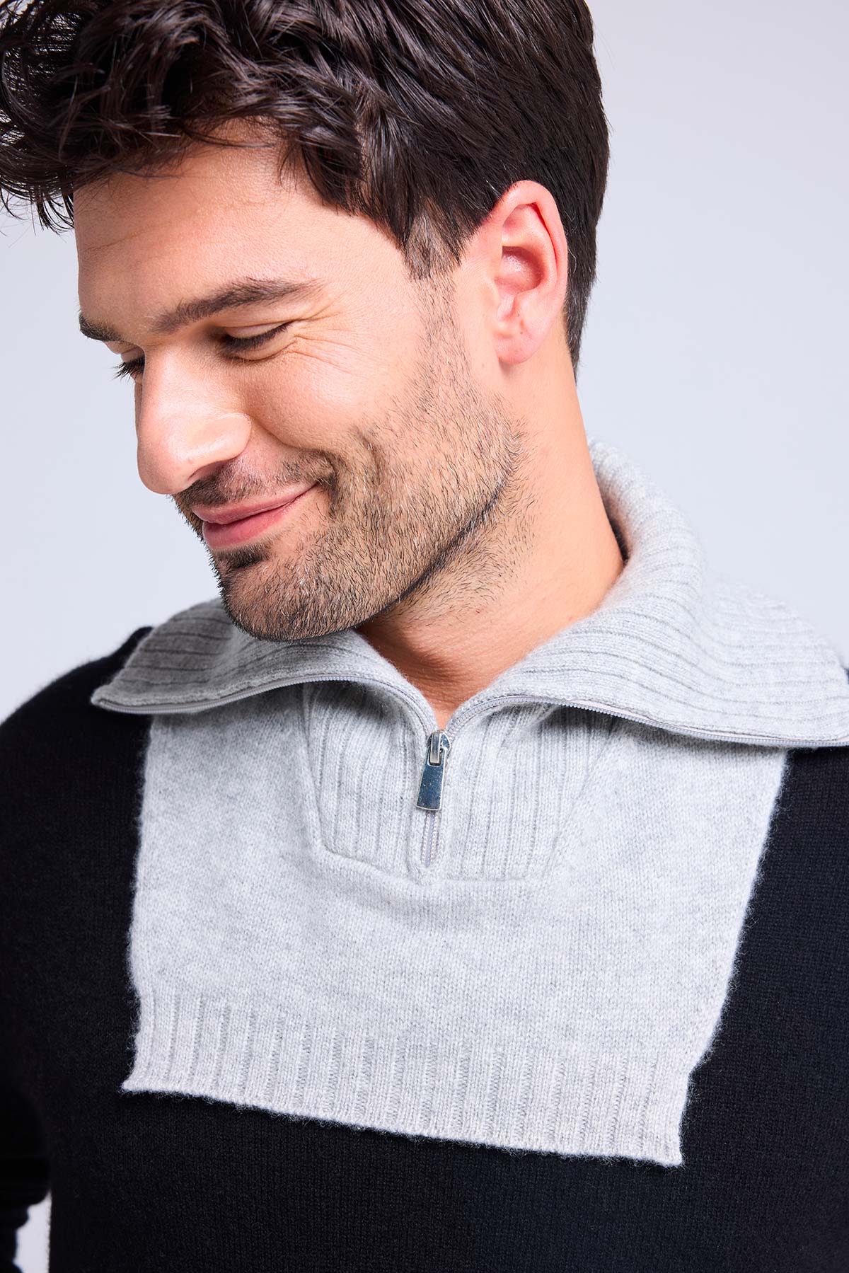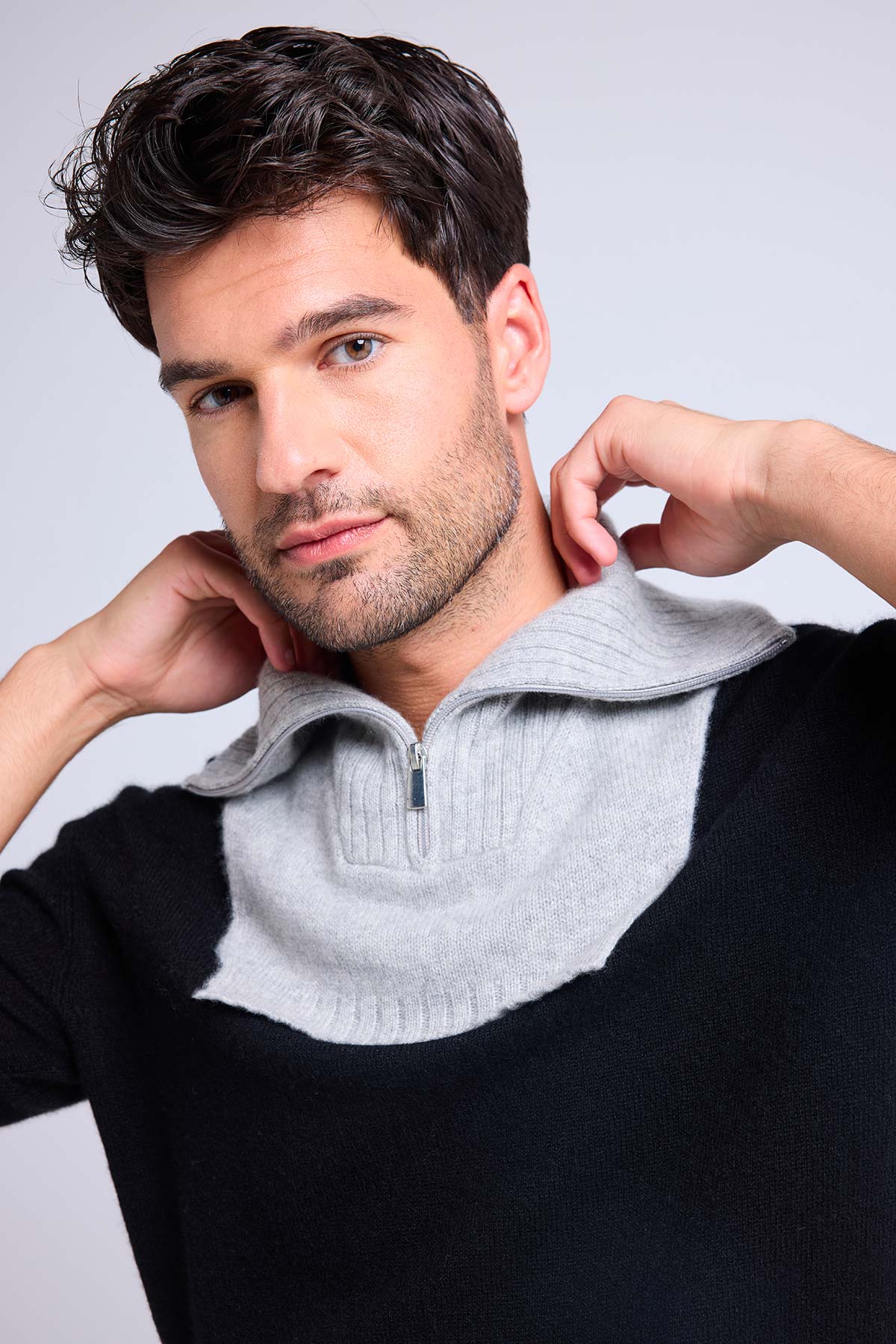 Col camionneur zippé en 100% cachemire 2 fils, 12GG