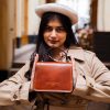 Sac à main en cuir avec une poche intérieure, fermeture magnétique et bandoulière amovible, ajustable en cuir.