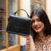 Sac à main en cuir avec une poche intérieure, fermeture magnétique et bandoulière amovible, ajustable en cuir.