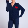MADRILENA – Cardigan col V en 100% cachemire avec cœur en intarsia