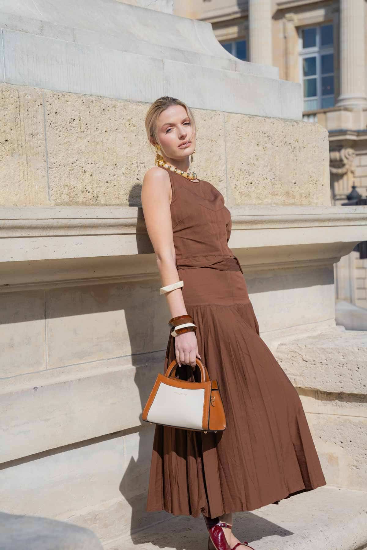 Découvrez le sac MILANO, une pièce au design architectural qui joue avec audace sur les contrastes de couleurs. Sa silhouette structurée et ses anses arrondies en font un modèle iconique, parfait pour apporter une touche de modernité graphique à votre vestiaire. À la fois élégant et fonctionnel, il passe avec aisance d’un porté main sophistiqué à un porté bandoulière dynamique, vous accompagnant avec style dans toutes vos aventures urbaines.