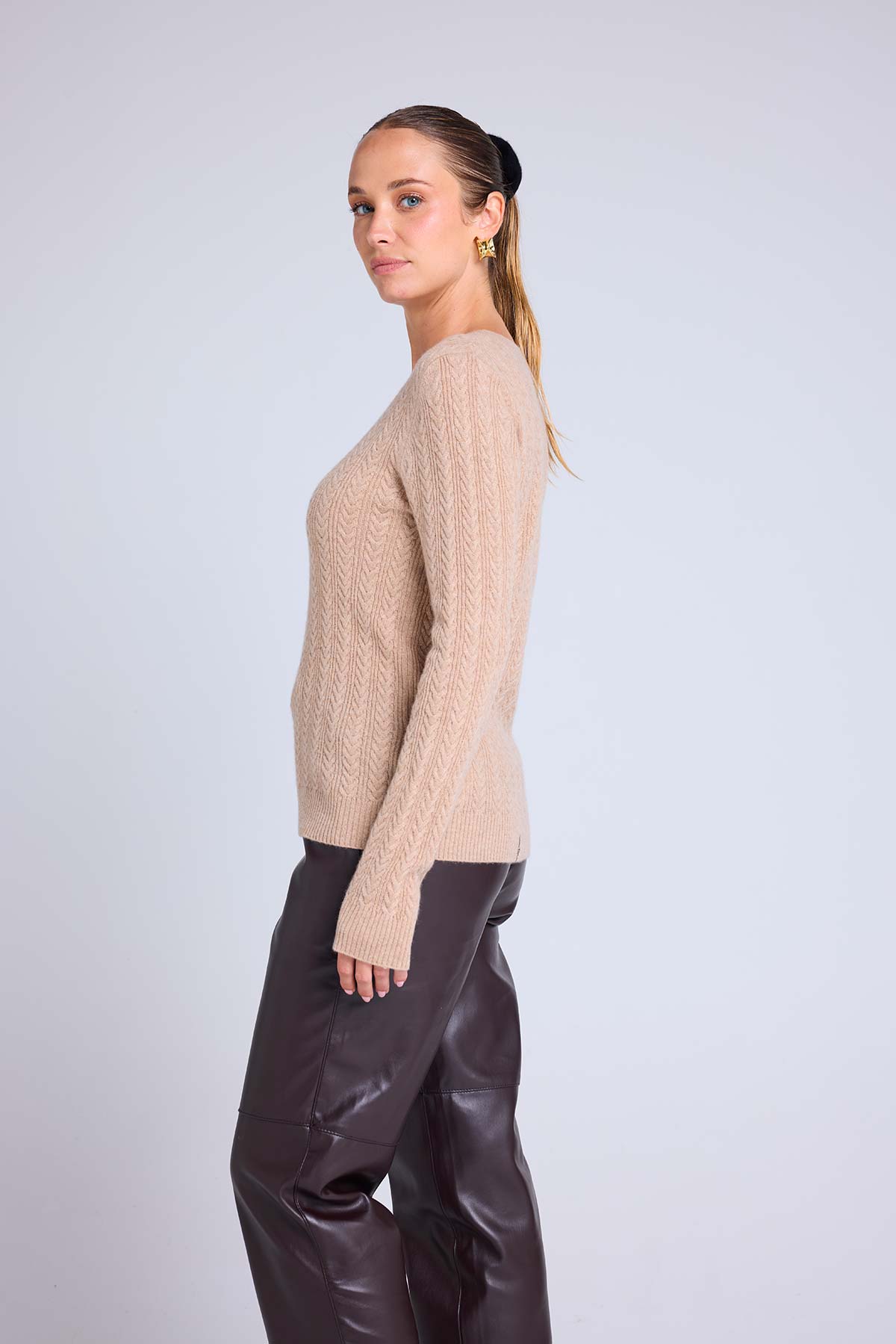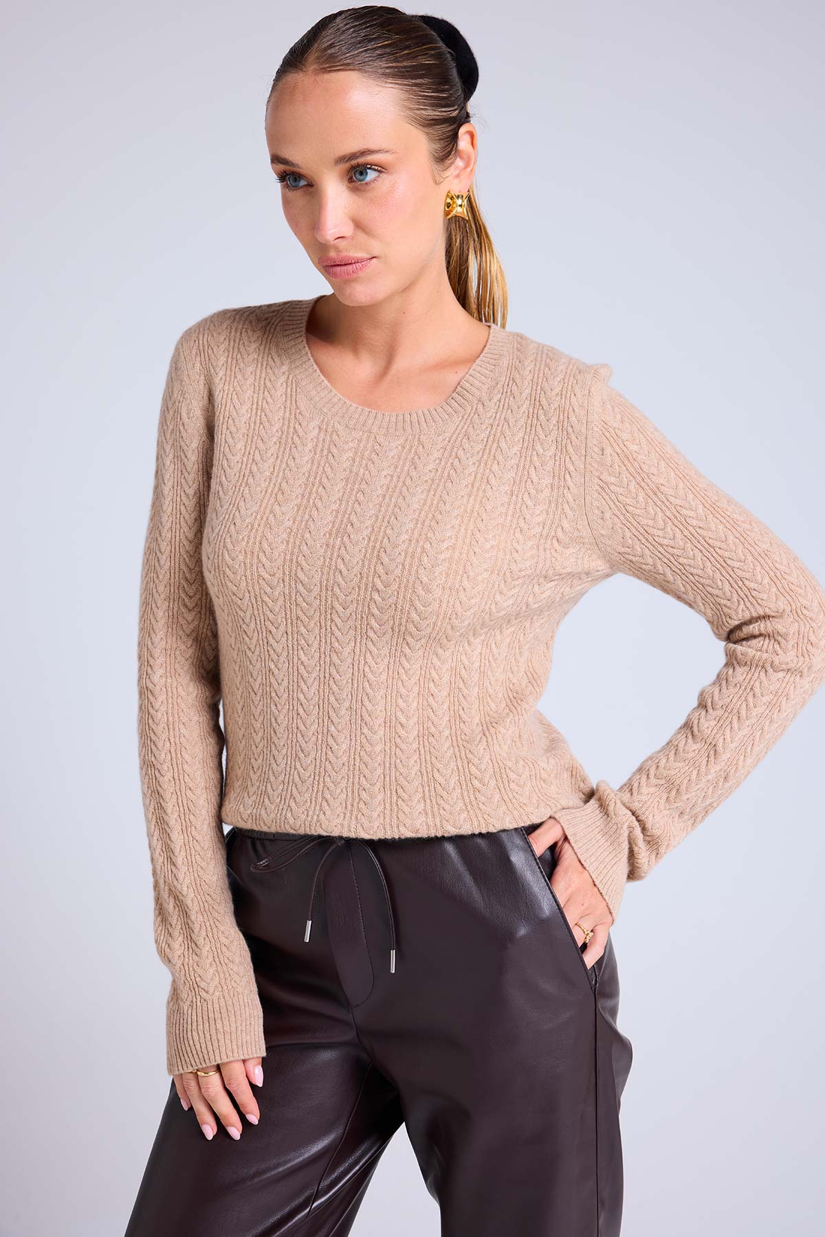 Un jeu de torsades se dévoile sur ce pull confectionné en cachemire épais. Il est muni d’un col rond, de manches longues et de bords côtelés. Incarnant l’élégance intemporelle, il vient réchauffer votre allure d’un chic tout en douceur. Pièce incontournable de la saison, associez-le à un pantalon droit, une jupe ou un jean.