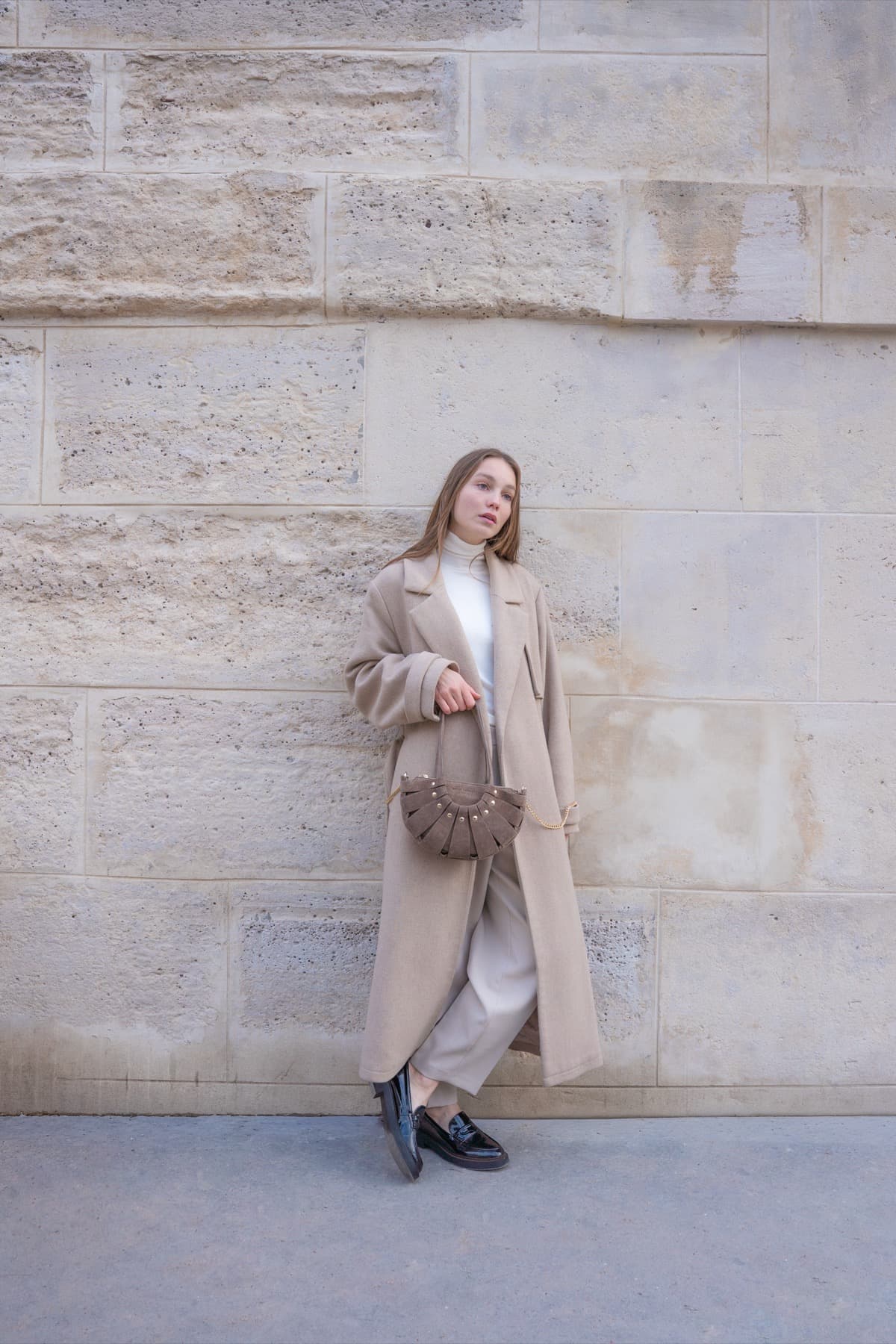Matière : Cuir de vachette suède – couleur : taupe