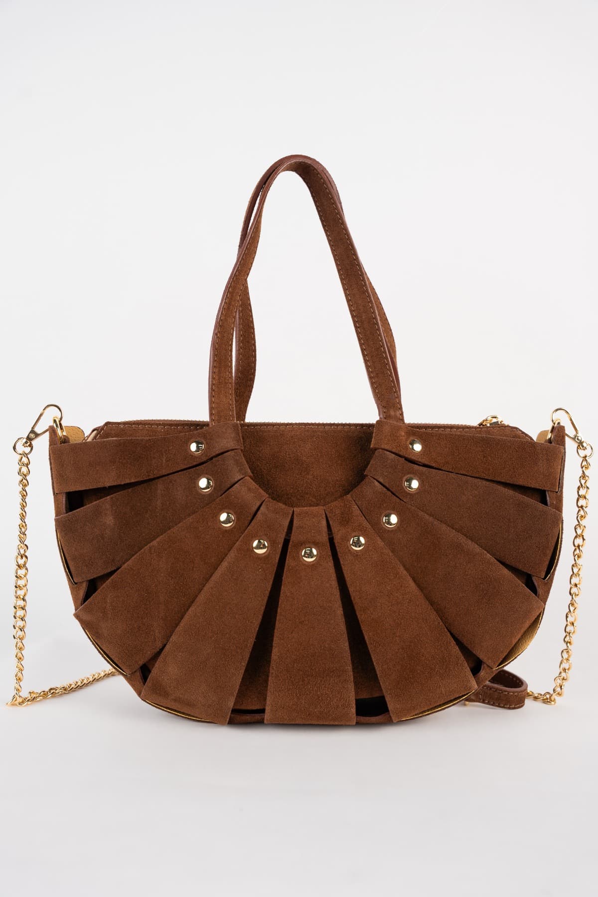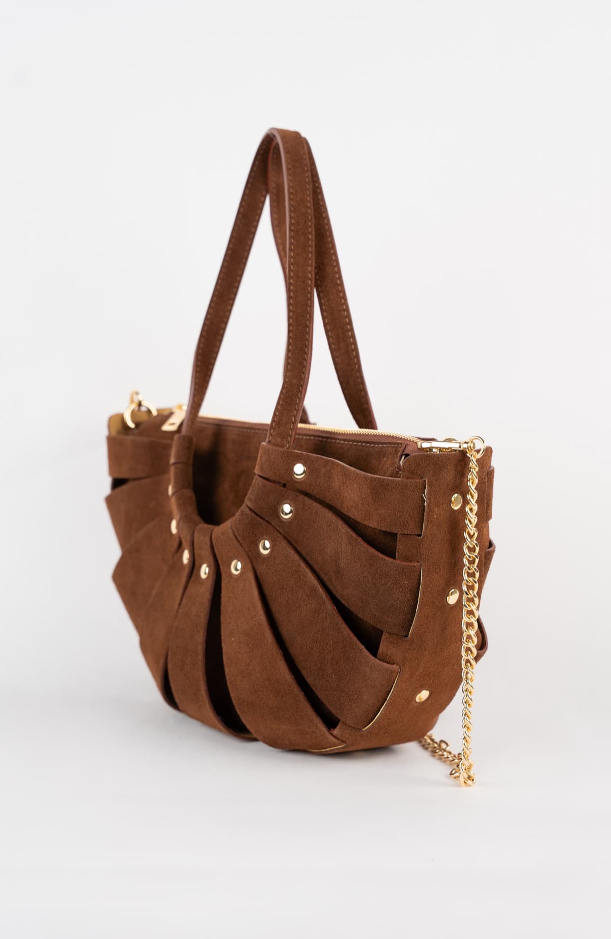 Découvrez MINI SPARTI, l’accessoire qui capture l’esprit de l’élégance de Maison Héritage. Façonné en cuir de vachette suède, il déploie une silhouette en forme de demi-lune ponctuée de clous décoratifs couleur or. Son double compartiment ingénieux, sécurisé par une fermeture zippée, allie originalité intemporelle à la praticité de l’essentiel. Dimensions : 29 cm x 18 cm x 5 cm (longueur x hauteur x largeur)