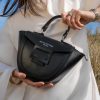 Sac à main avec ouverture principal à rabais et femeture avec bontons aimanté + fermeture à zip + 1 bandoulière. Interieur : 1 poche à zip