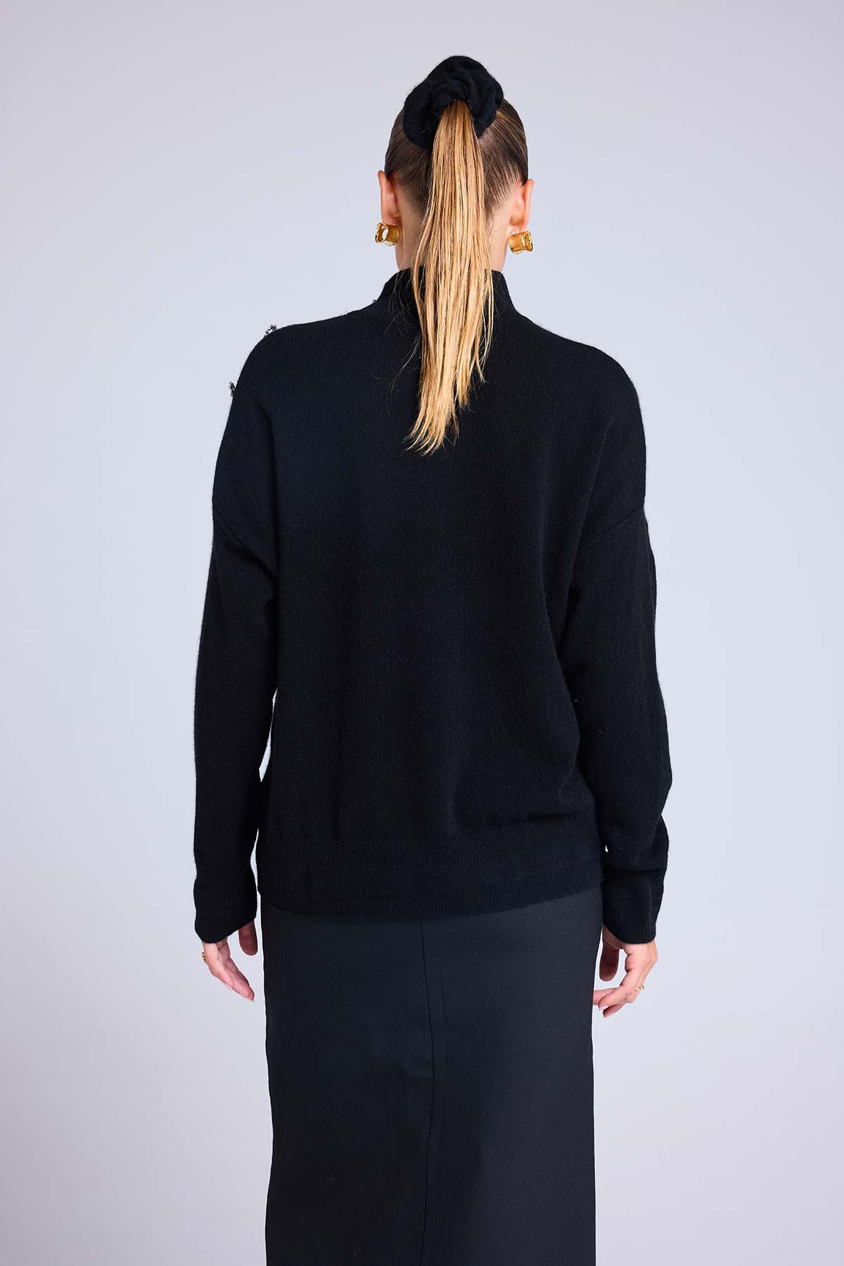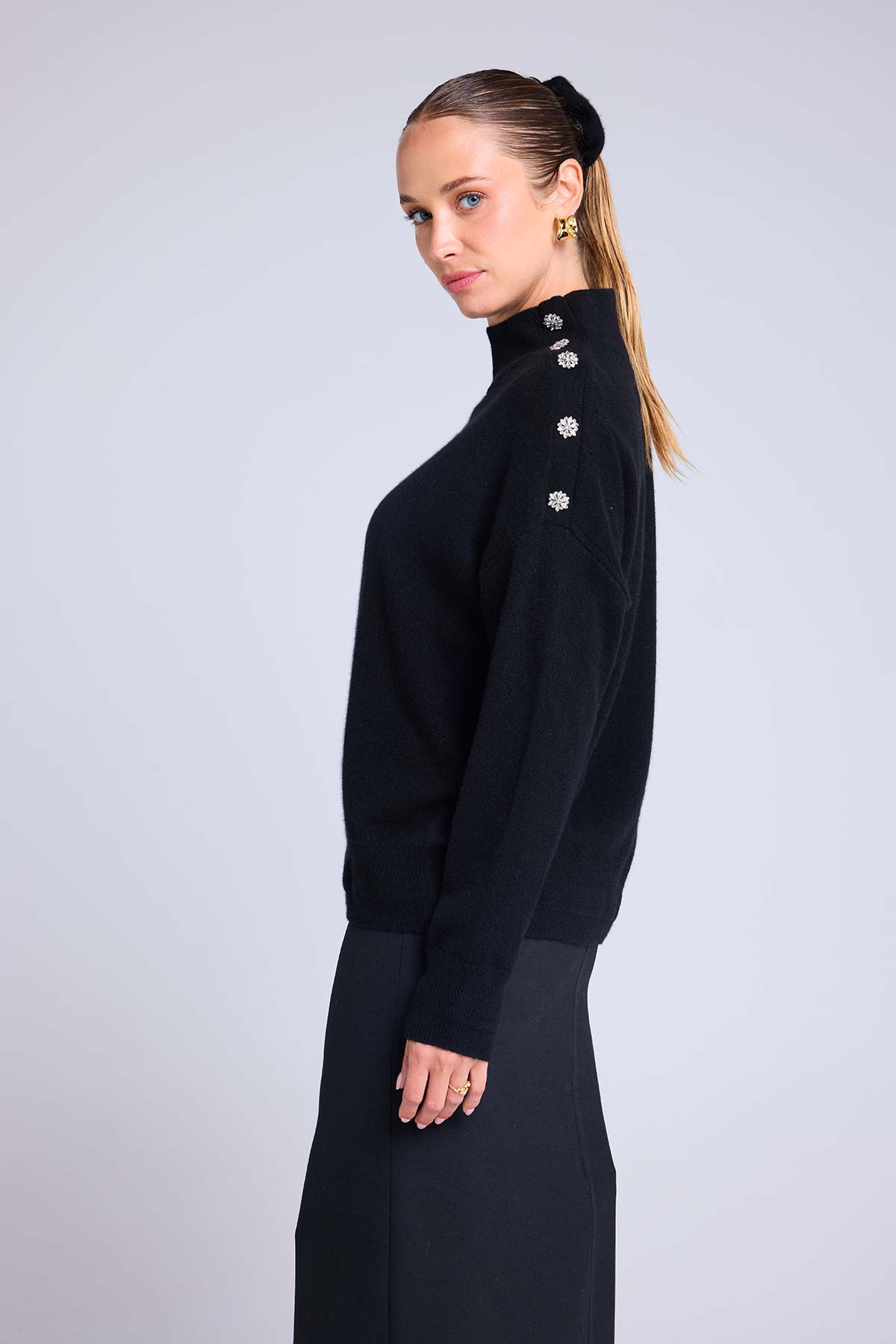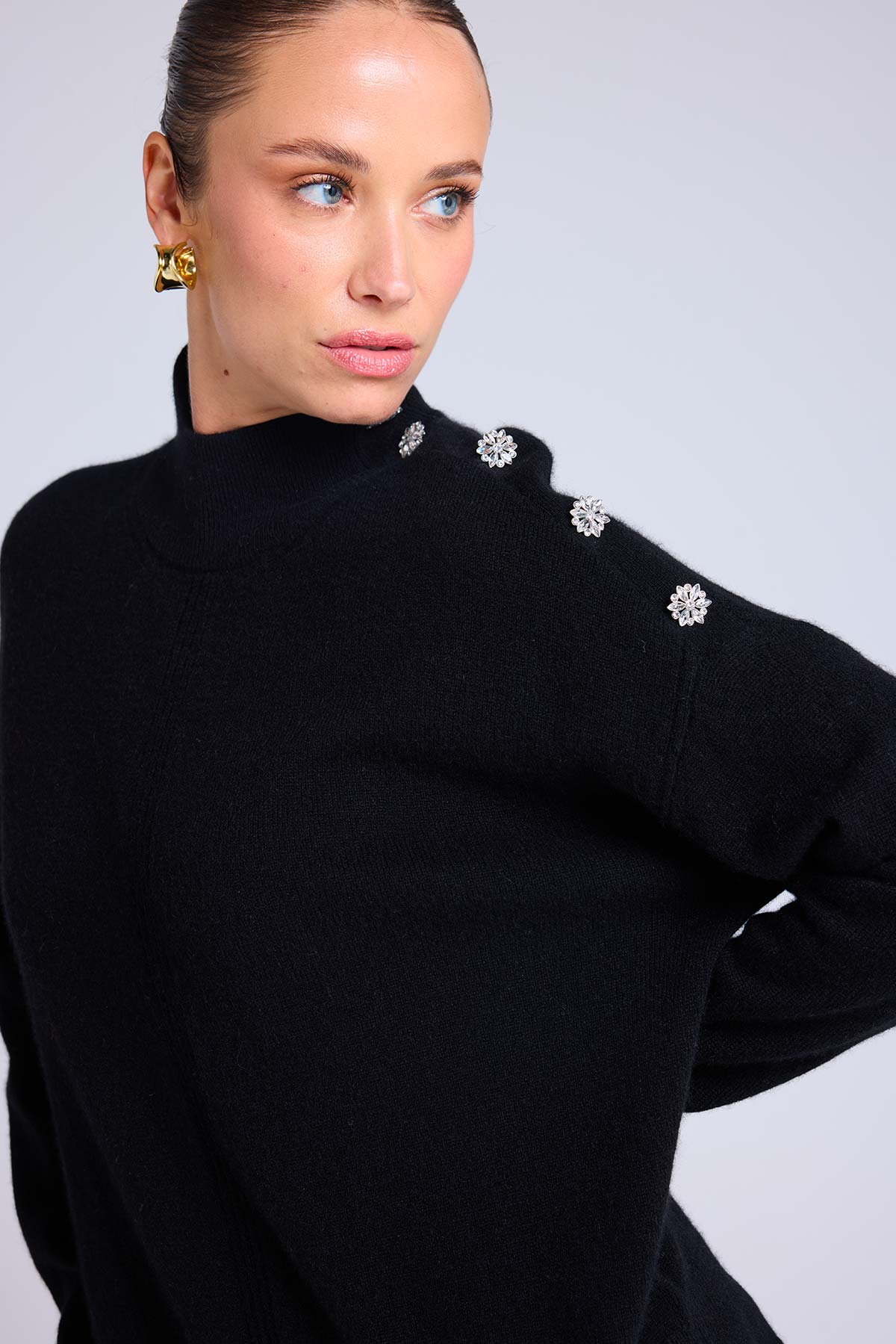 Col montant avec patte d’épaule décorée de 5 boutons bijoux