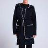MONIQUE – Manteau long en laine et cachemire à bordures contrastées