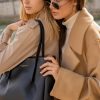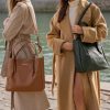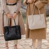 Sac à main, avec deux anses, une bandoulière ajustable et amovible, deux compartiments séparée par une poches à zip avec une poche intérieur au dos du sac à zip et un poche intérieur à l’avant, porte carte