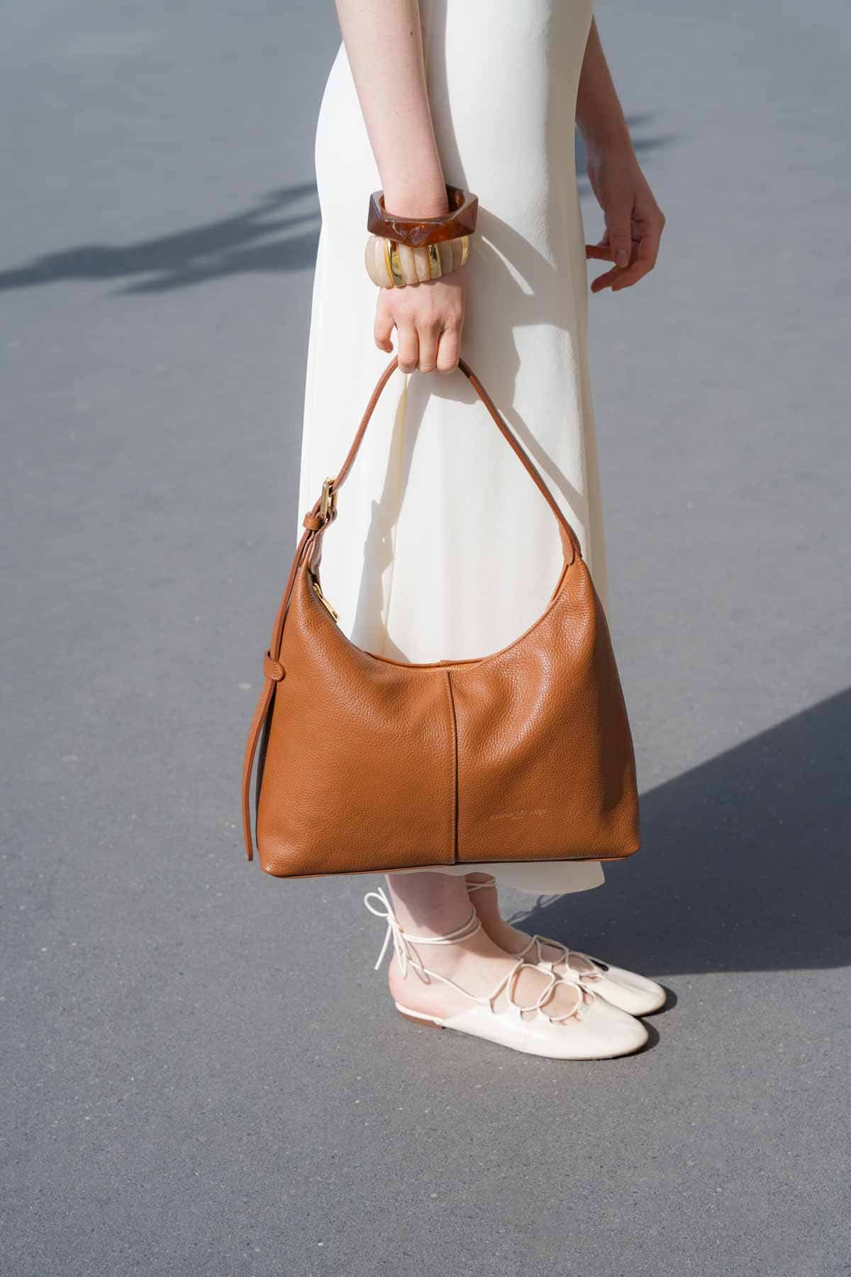 Découvrez le sac ONDA, un modèle au design incurvé qui capture l’essence d’une structure chic. Sa silhouette souple et sondesign épurée en font l’accessoire idéal pour une allure décontractée mais sophistiquée. Il vous accompagne avec légèreté tout au long de la journée, apportant une touche de modernité à vos ensembles les plus minimalistes.