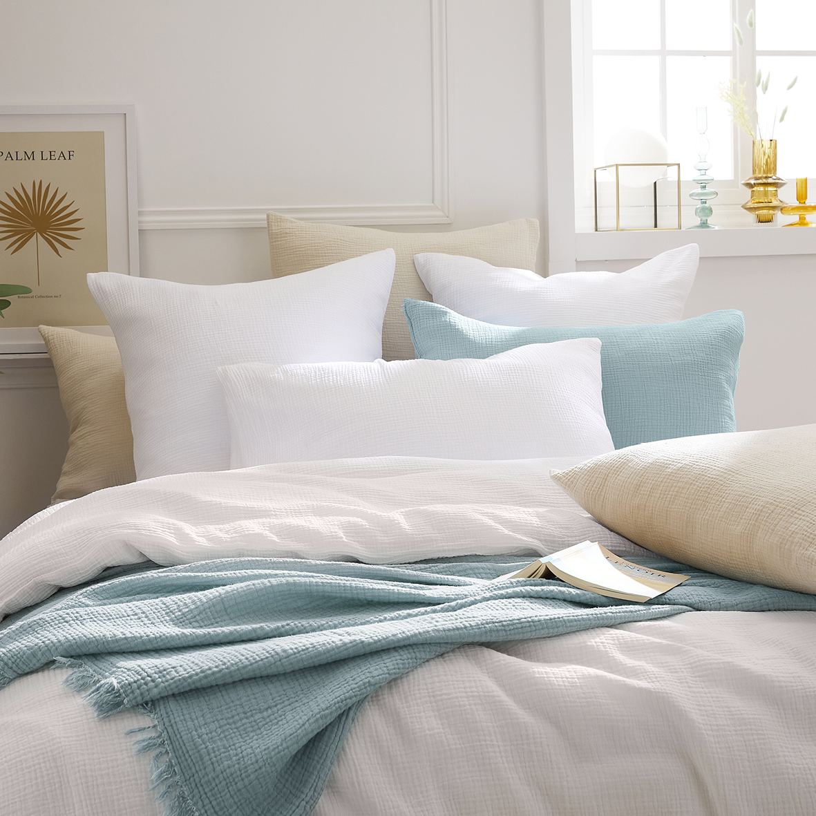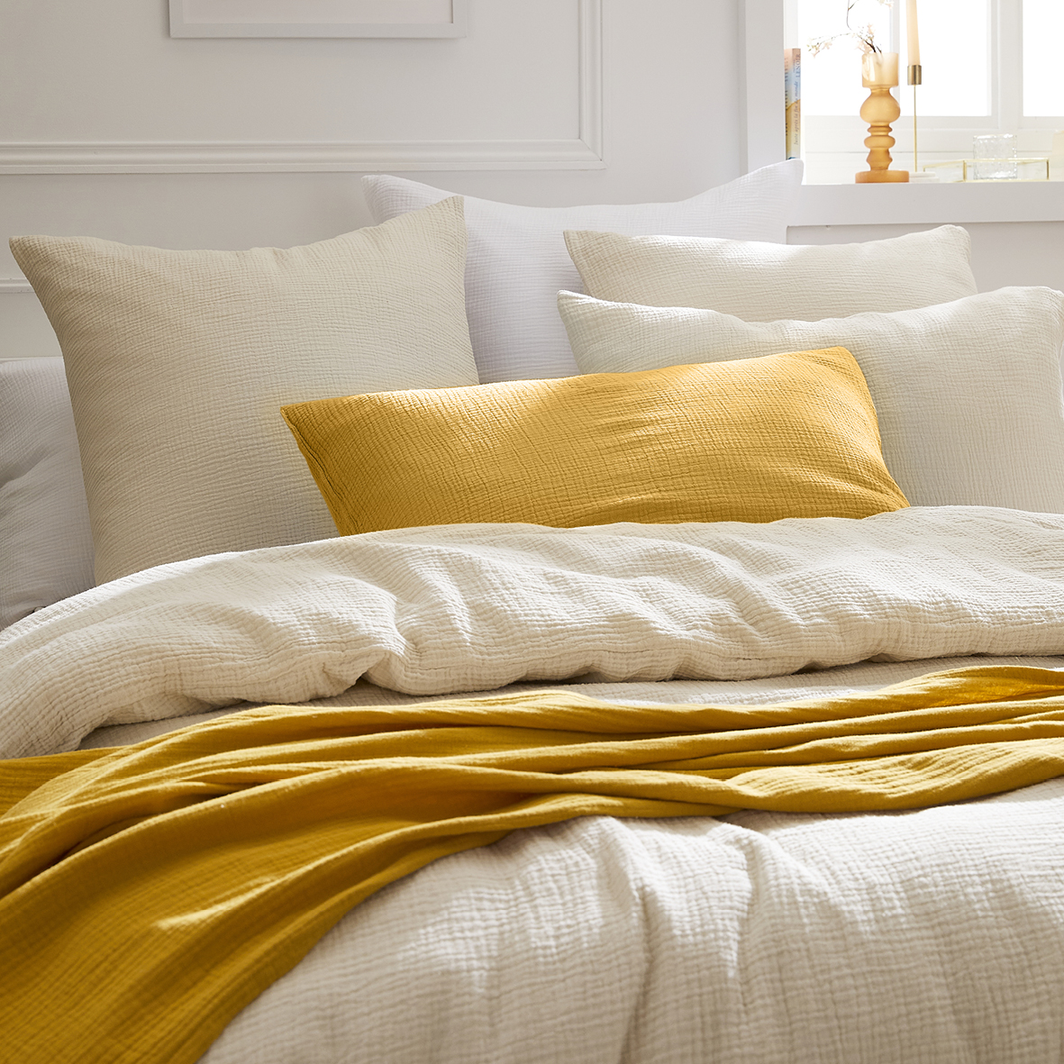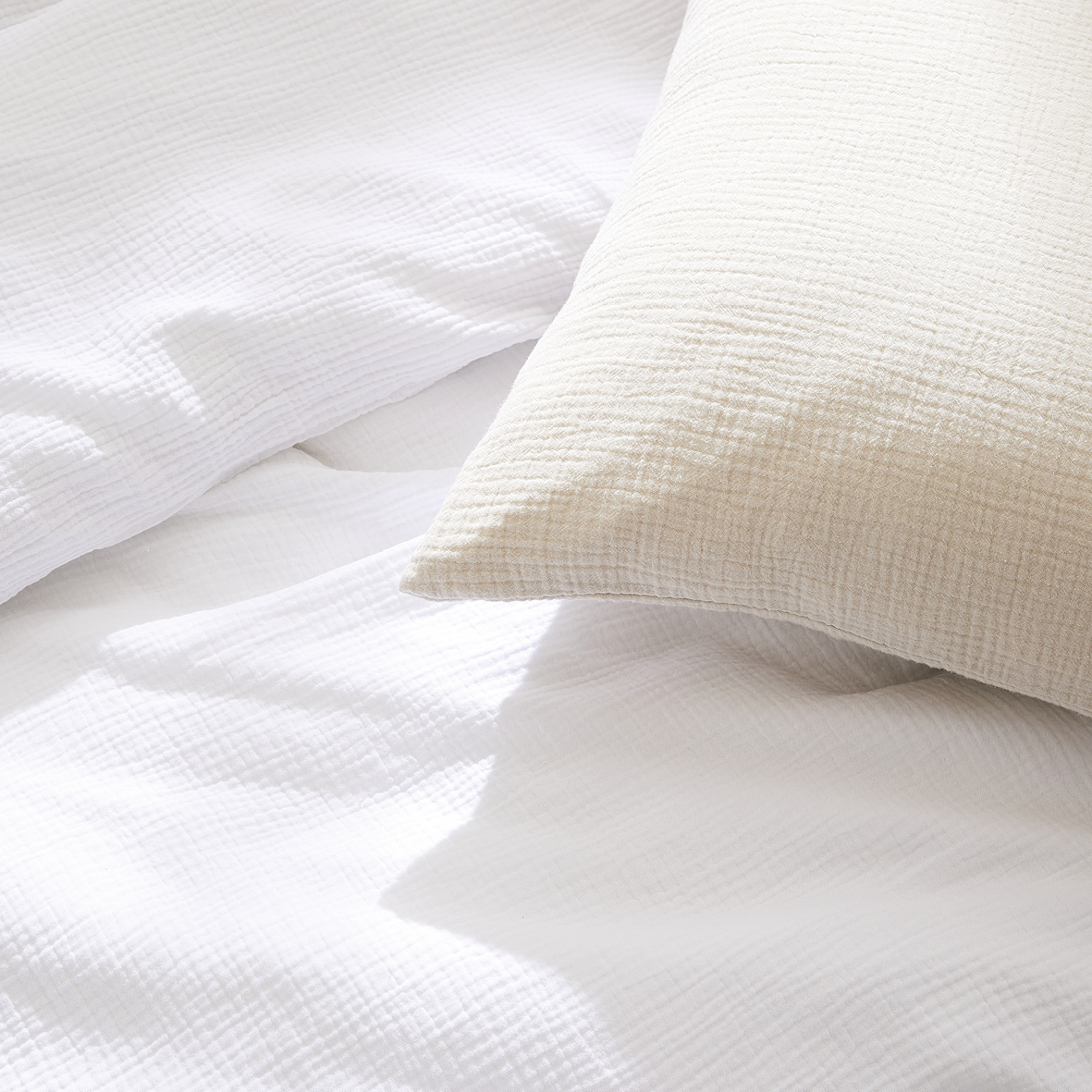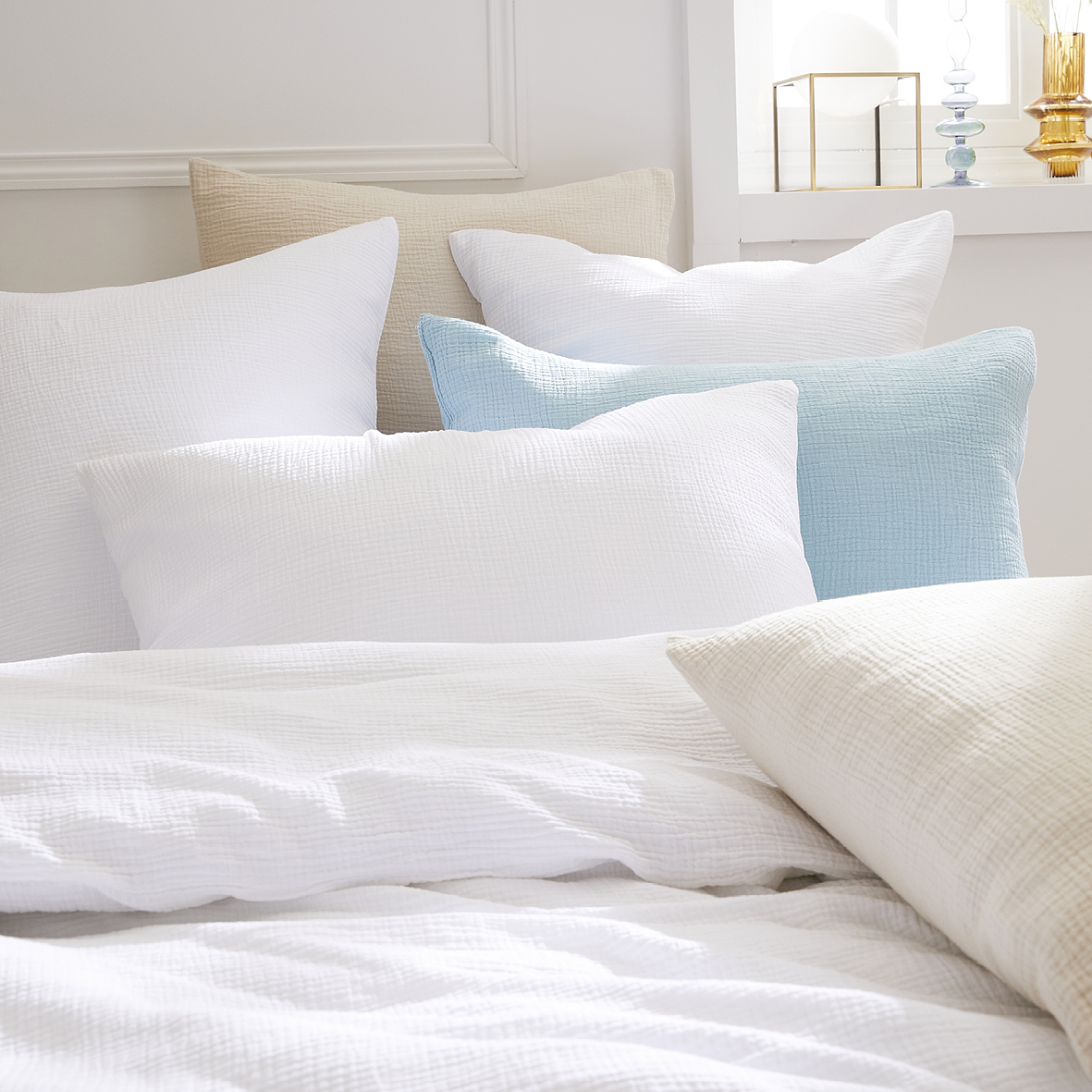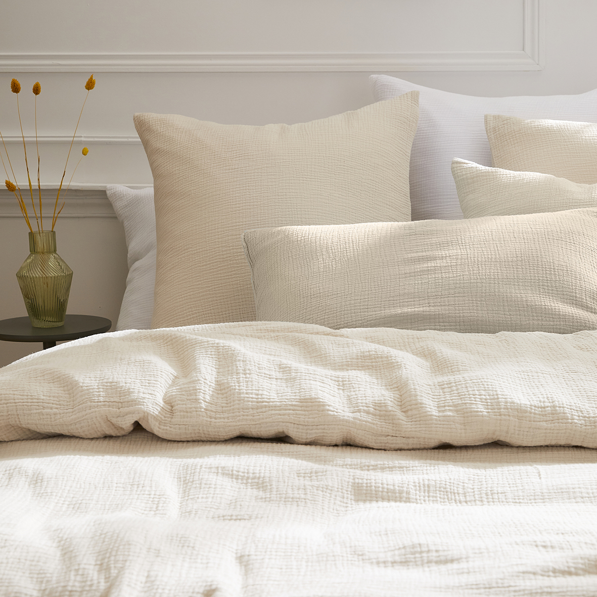Le linge de lit en gaze de coton offre une douceur incomparable et une sensation de légèreté, idéale pour des nuits confortables et reposantes. Fabriqué à partir de fibres de coton naturelles tissées de manière lâche, ce matériau permet une excellente respirabilité, régulant ainsi la température corporelle tout au long de la nuit. Sa texture aérée et sa finesse offrent un toucher délicat sur la peau, procurant une expérience de sommeil luxueuse et apaisante.