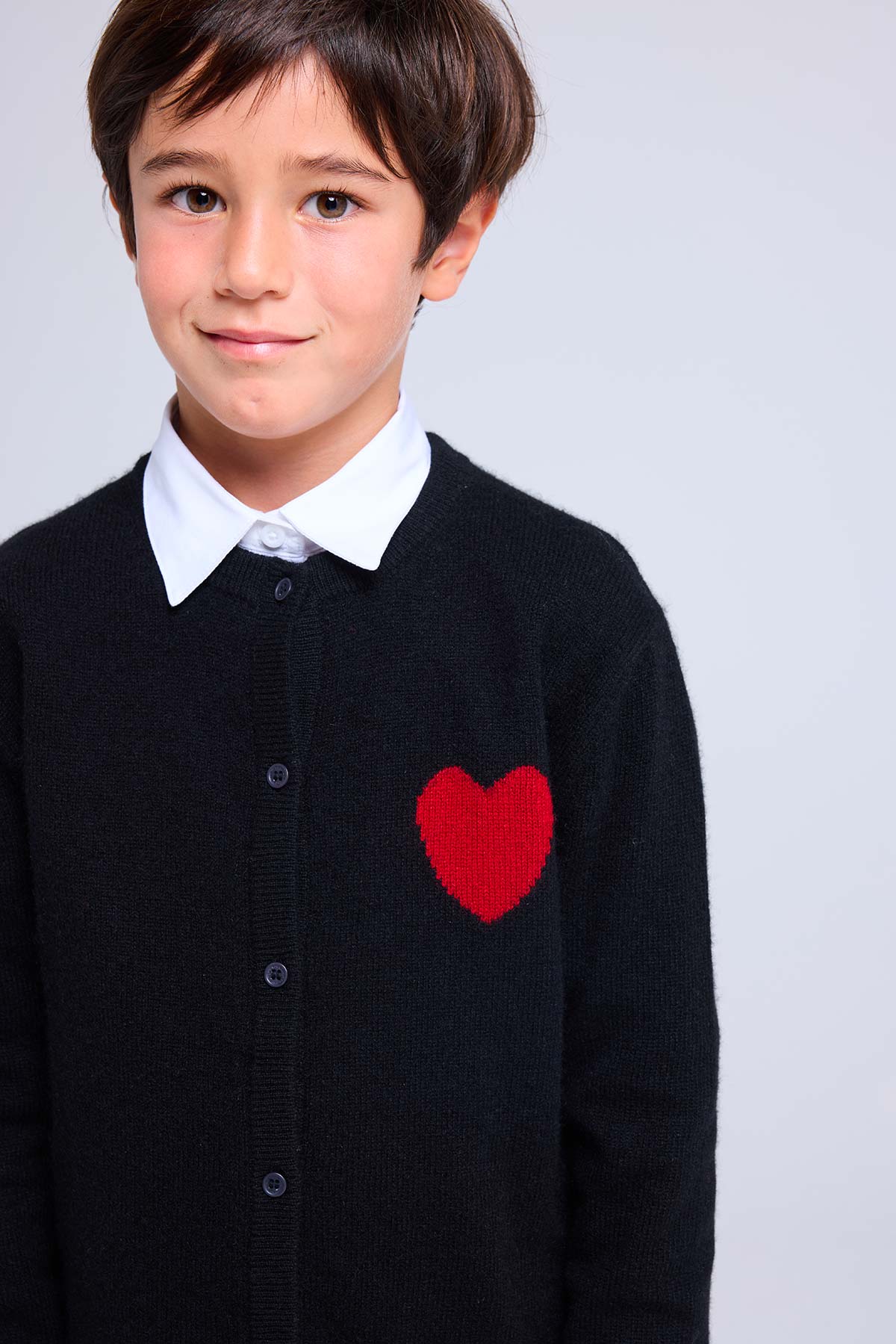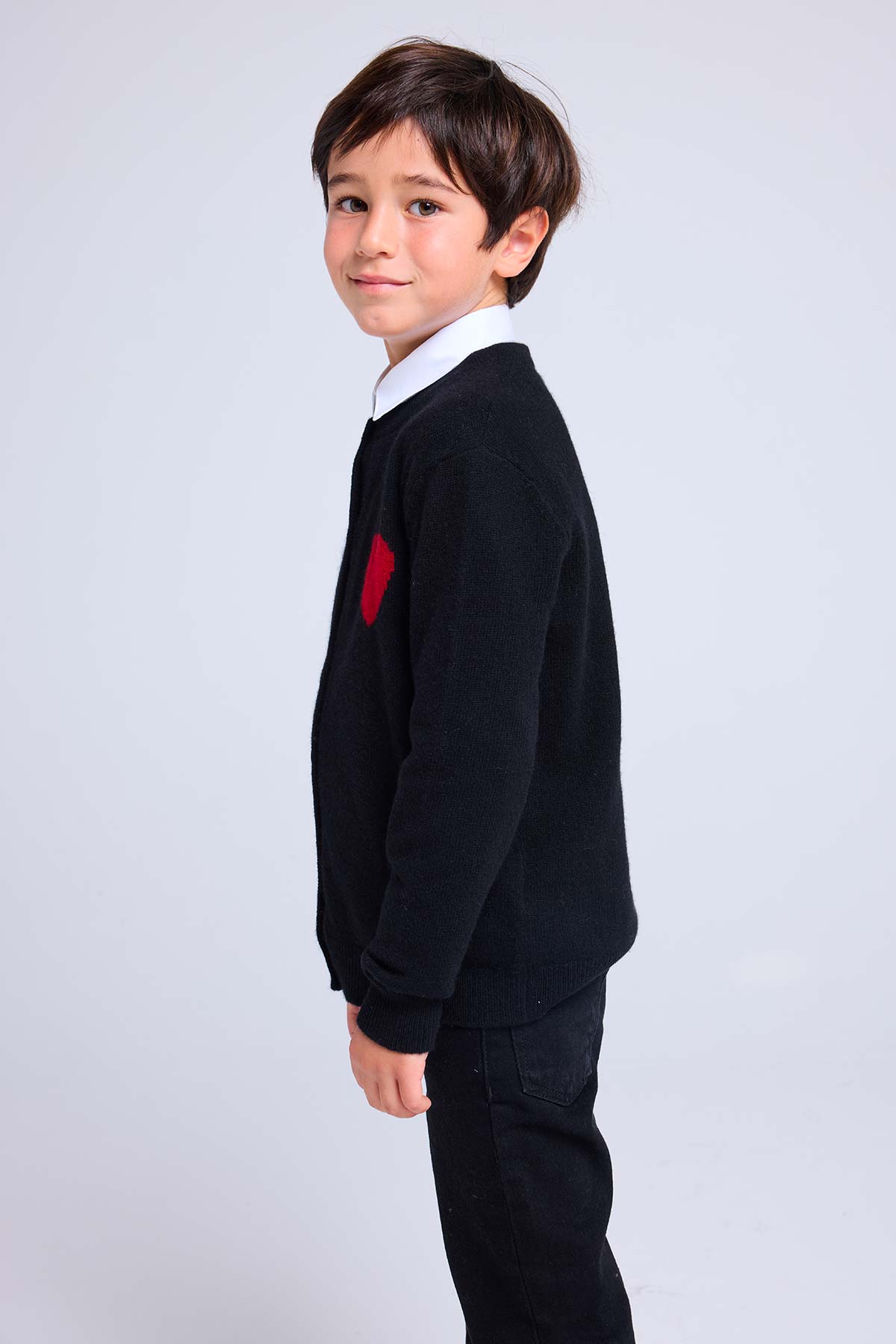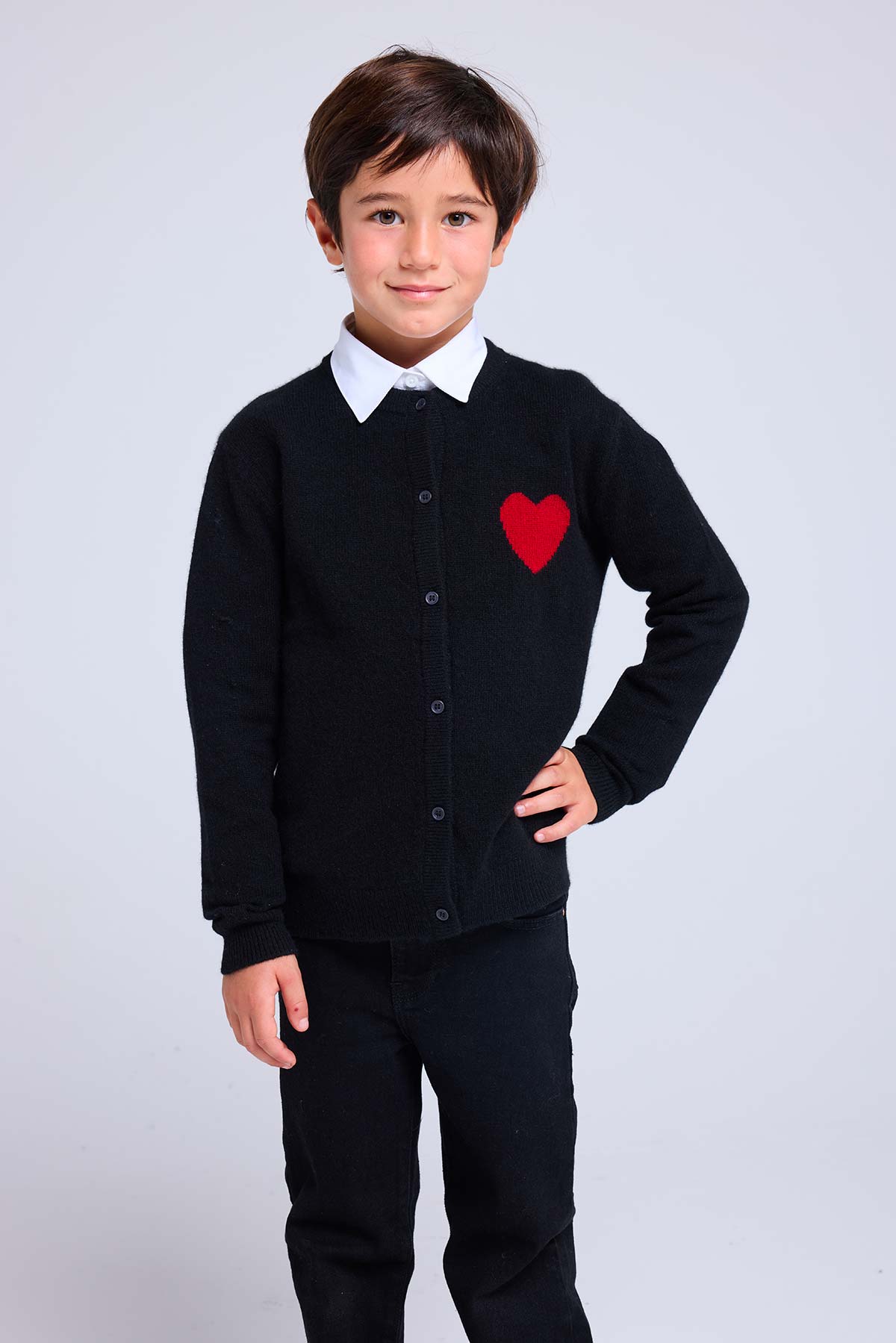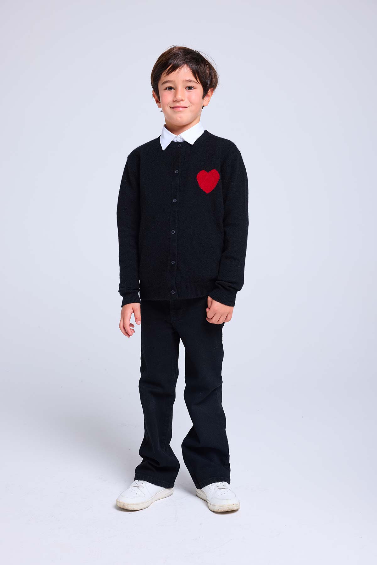 Le cardigan POLLY est conçu pour les enfants, alliant douceur et style. Entièrement tricoté en cachemire d’exception, il se distingue par un cœur en intarsia sur la poitrine, apportant une touche ludique et tendre. Sa coupe droite et ses finitions soignées en font une pièce facile à porter, que ce soit ouverte sur un t-shirt ou fermée pour un look plus habillé.