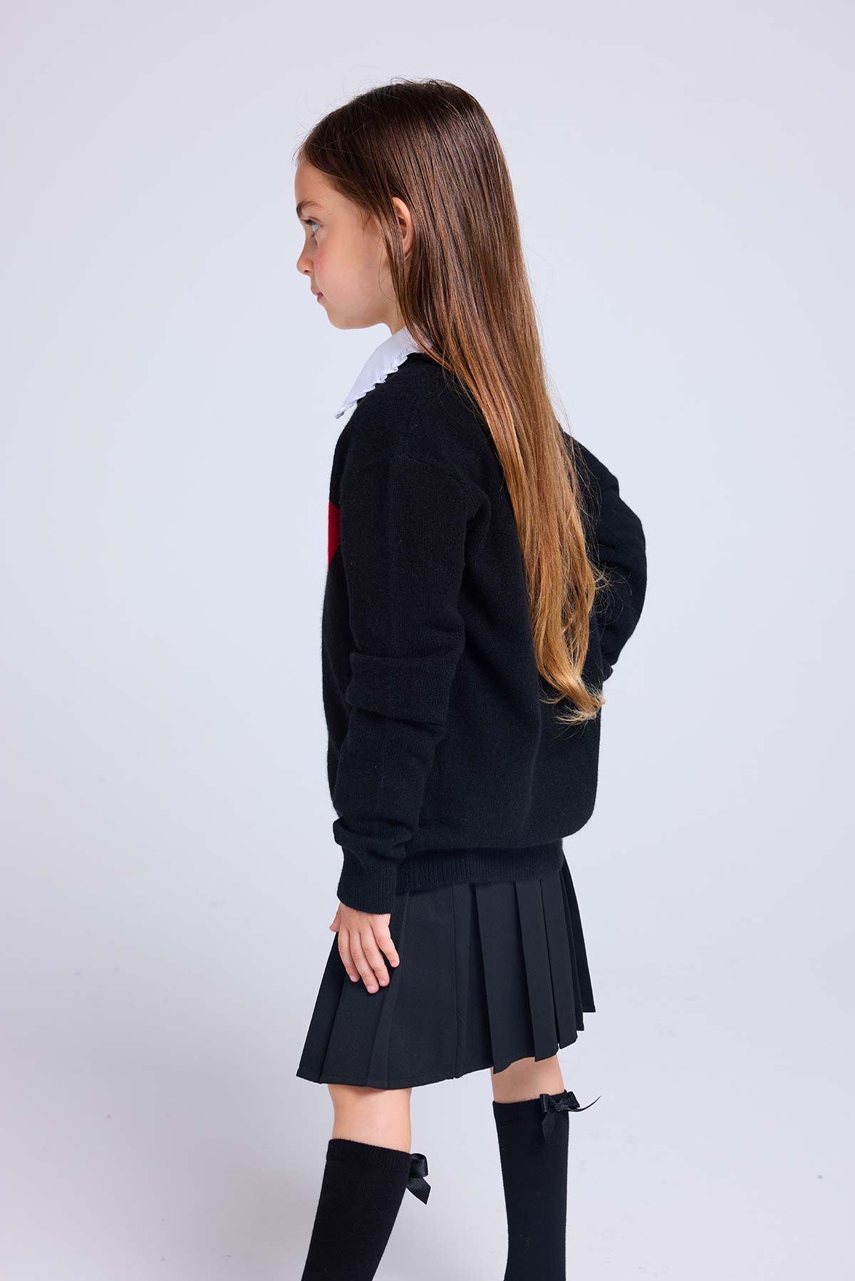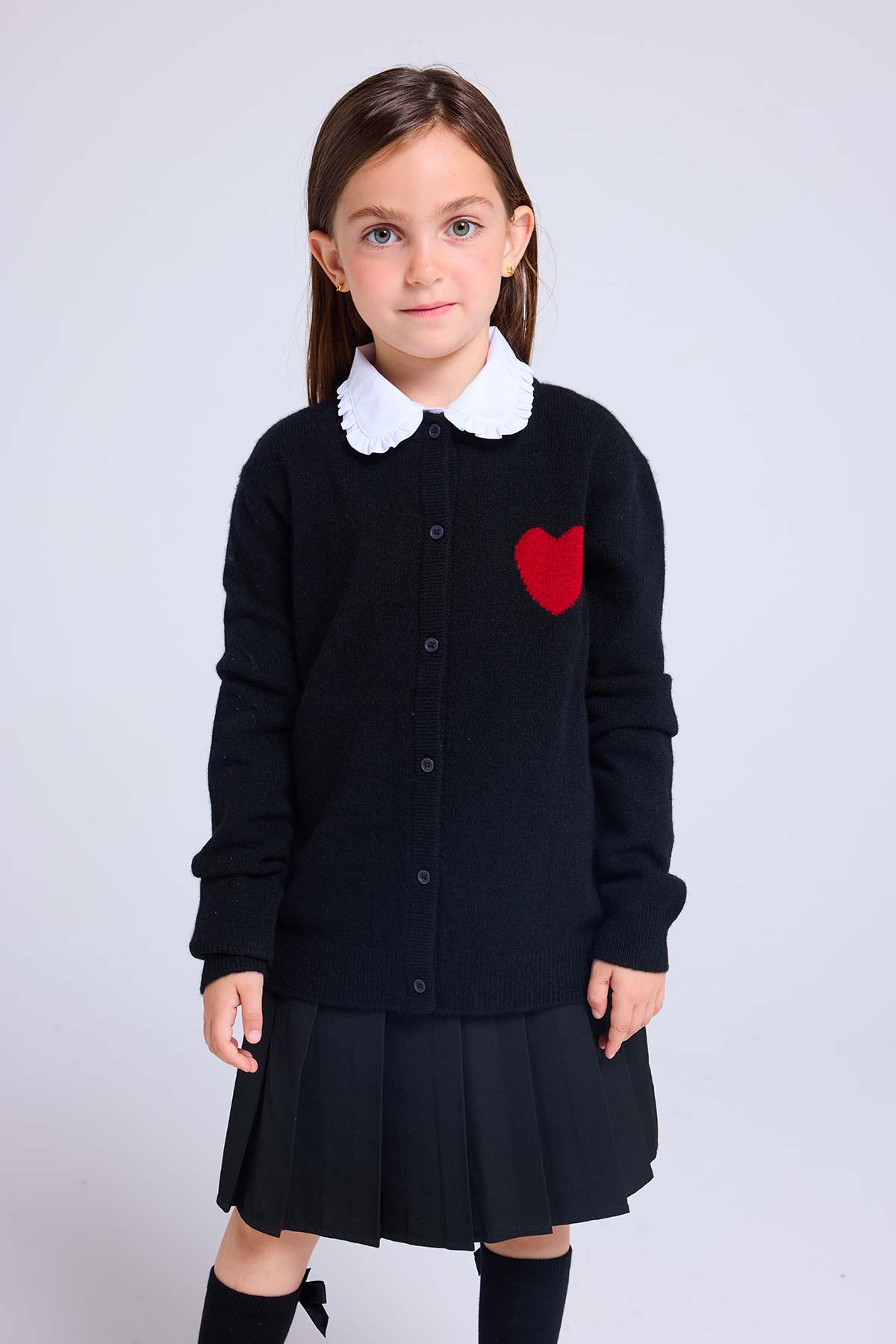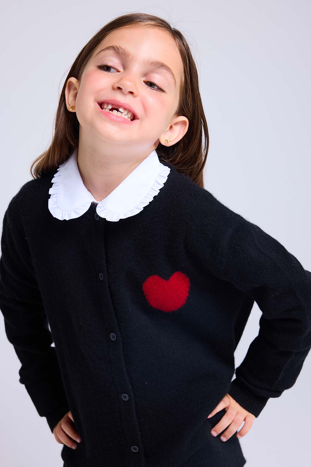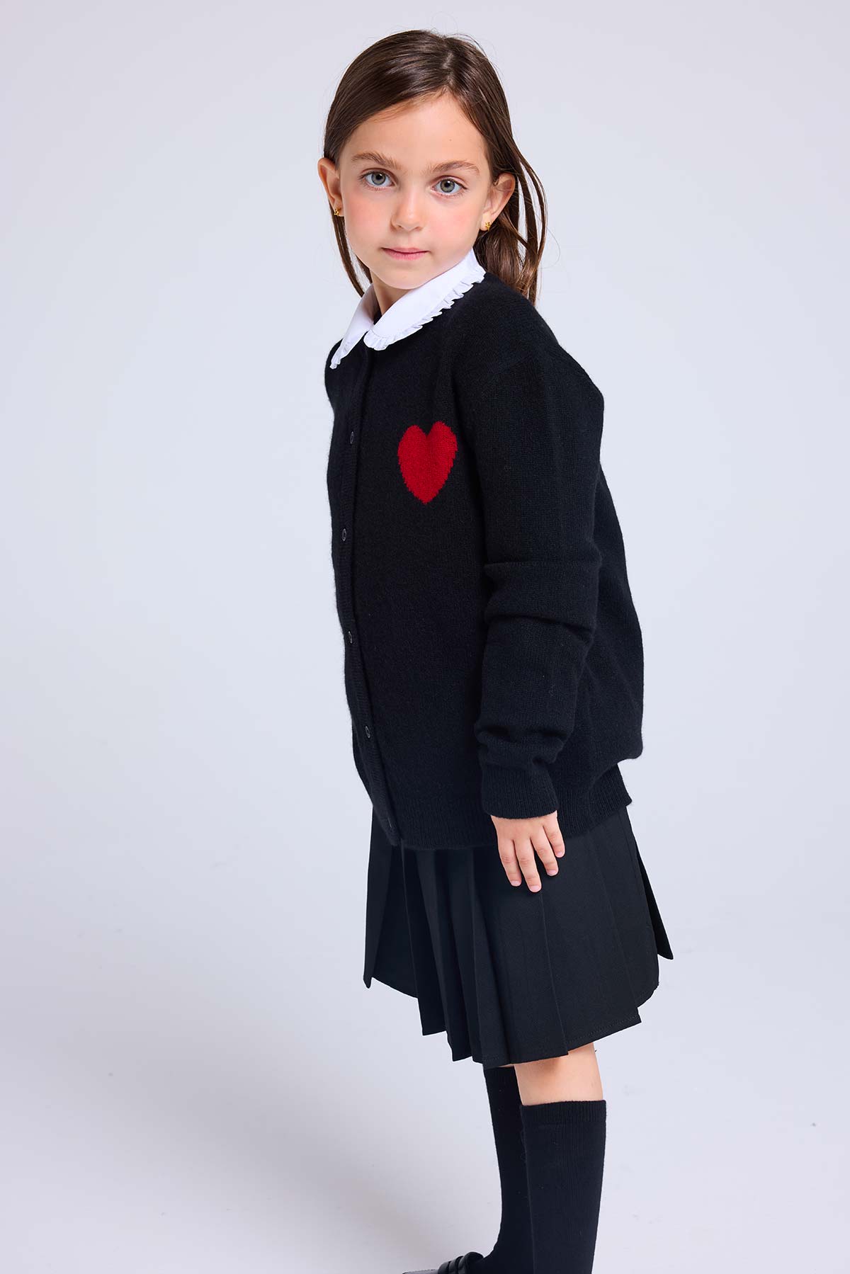 Le cardigan POLLY est conçu pour les enfants, alliant douceur et style. Entièrement tricoté en cachemire d’exception, il se distingue par un cœur en intarsia sur la poitrine, apportant une touche ludique et tendre. Sa coupe droite et ses finitions soignées en font une pièce facile à porter, que ce soit ouverte sur un t-shirt ou fermée pour un look plus habillé.