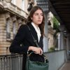 Sac à main en cuir avec poche intérieure zippée, fermeture à glissière et bandoulière ajustable amovible.
