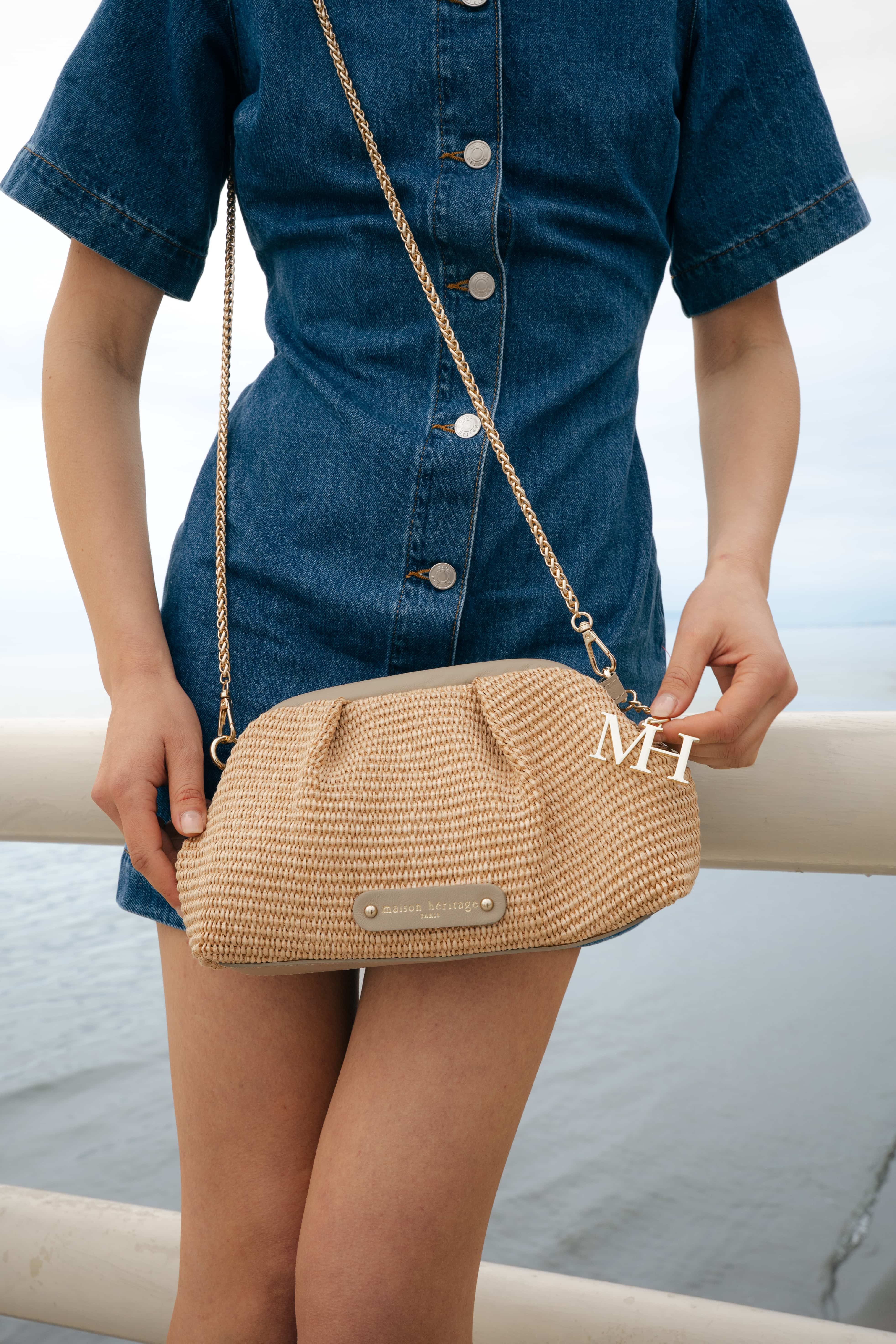 – Matière : Cuir de vachette rainé et paille
