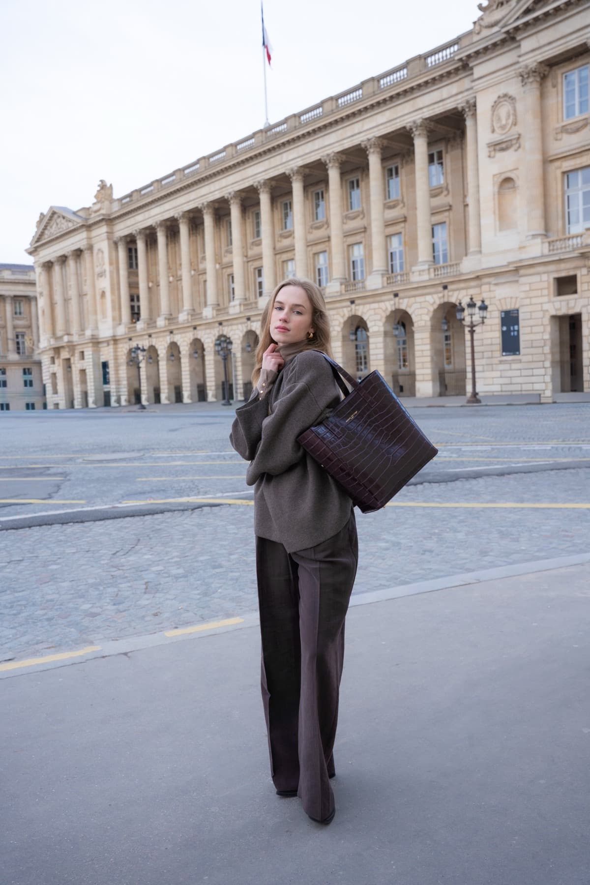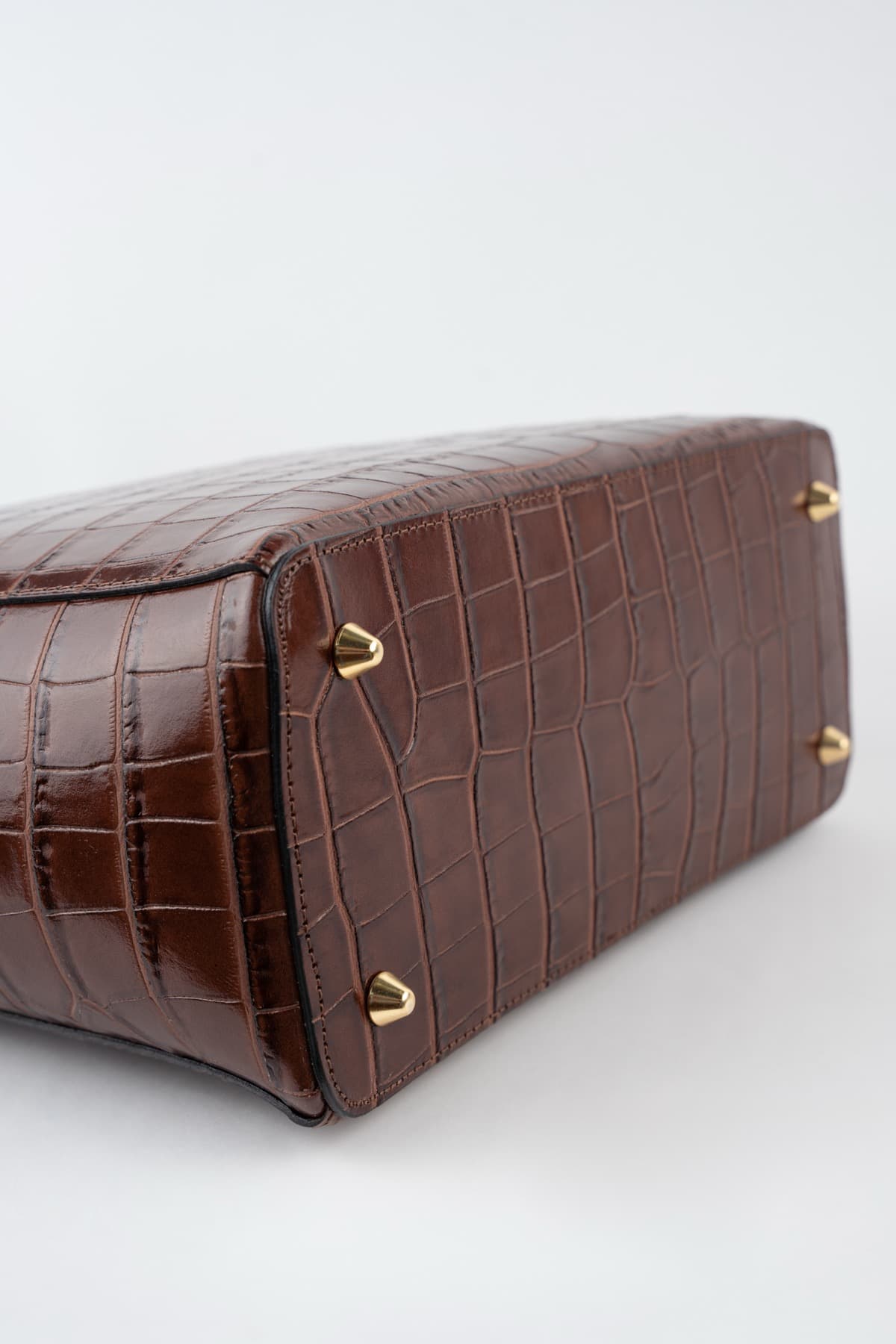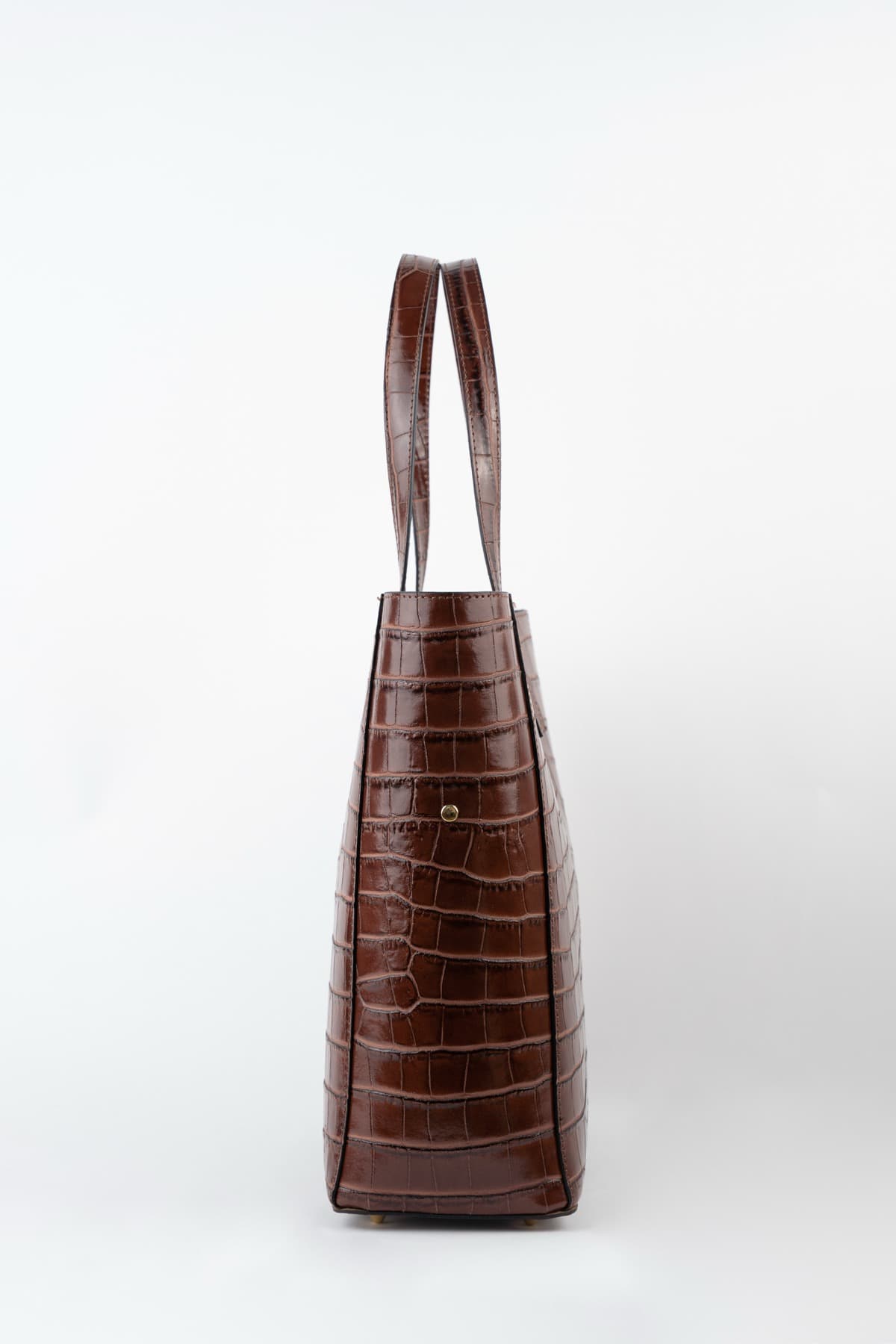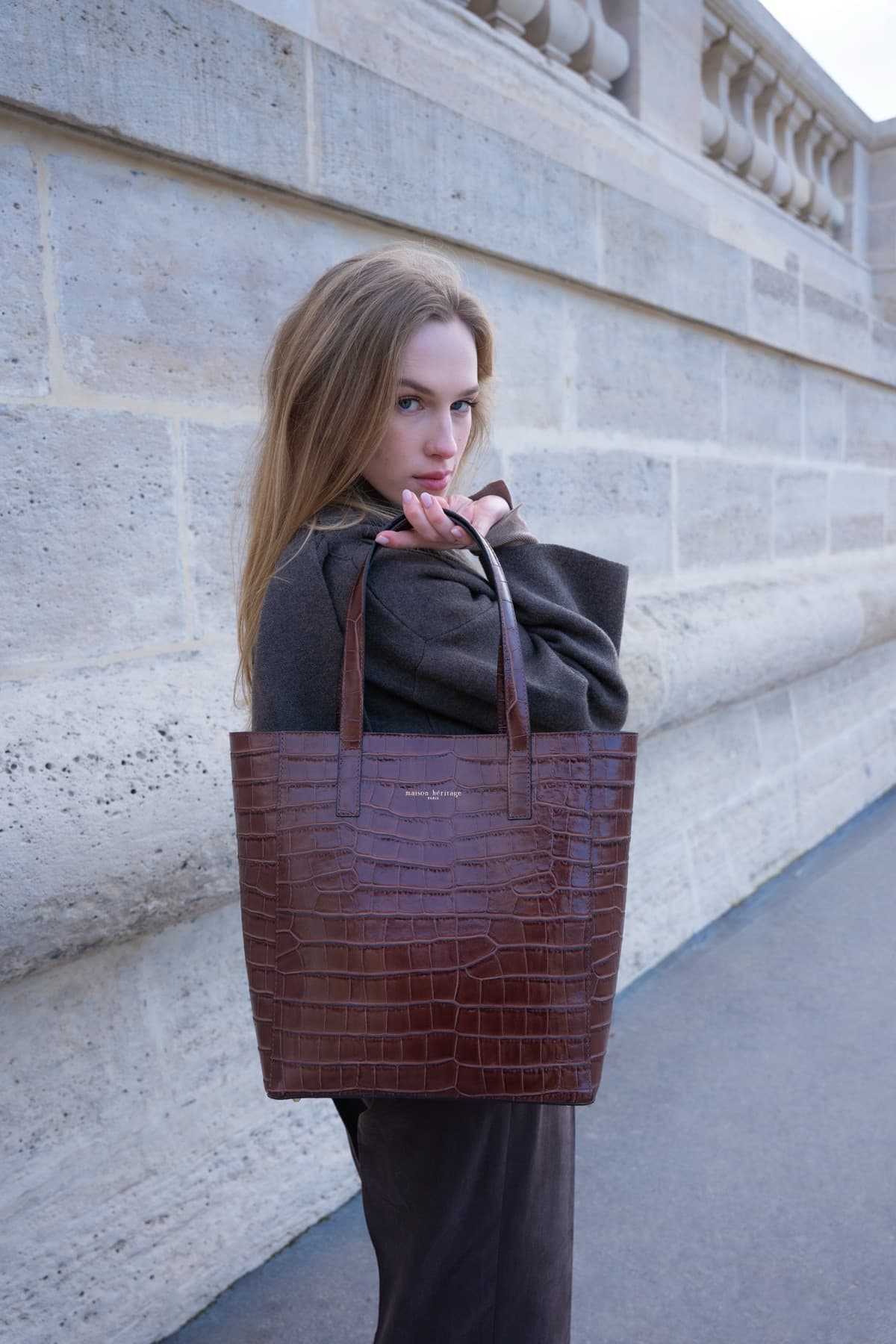 Le cabas audacieux en cuir croco offre une allure sophistiquée. Son grand format idéal s’adapte à toutes vos journées, porté avec chic par ses anses souples, ou en bandoulière grâce à sa sangle amovible et ajustable. Un accessoire de caractère, alliant la fonctionnalité d’un cabas à une texture puissante et distinguée. Dimensions : 28 cm x 32 cm x 12 cm (longueur x hauteur x largeur).