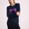 Muni d’un col rond, de manches longues et de bords côtelés, un double cœur vient orner votre allure chic et contemporaine. Une véritable déclaration d’amour pour notre Maison. Notre SELENA s’associe aussi bien à un pantalon large, une jupe ou à un jean.