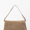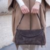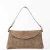 Sac bandoulière en cuir de vachette Suède. Style intemporel avec clip doré. Le sac à main contient une sangle amovible et ajustable pour porté épaule ou en bandoulière. Qualité et praticité garanties par une mini poche intérieure.