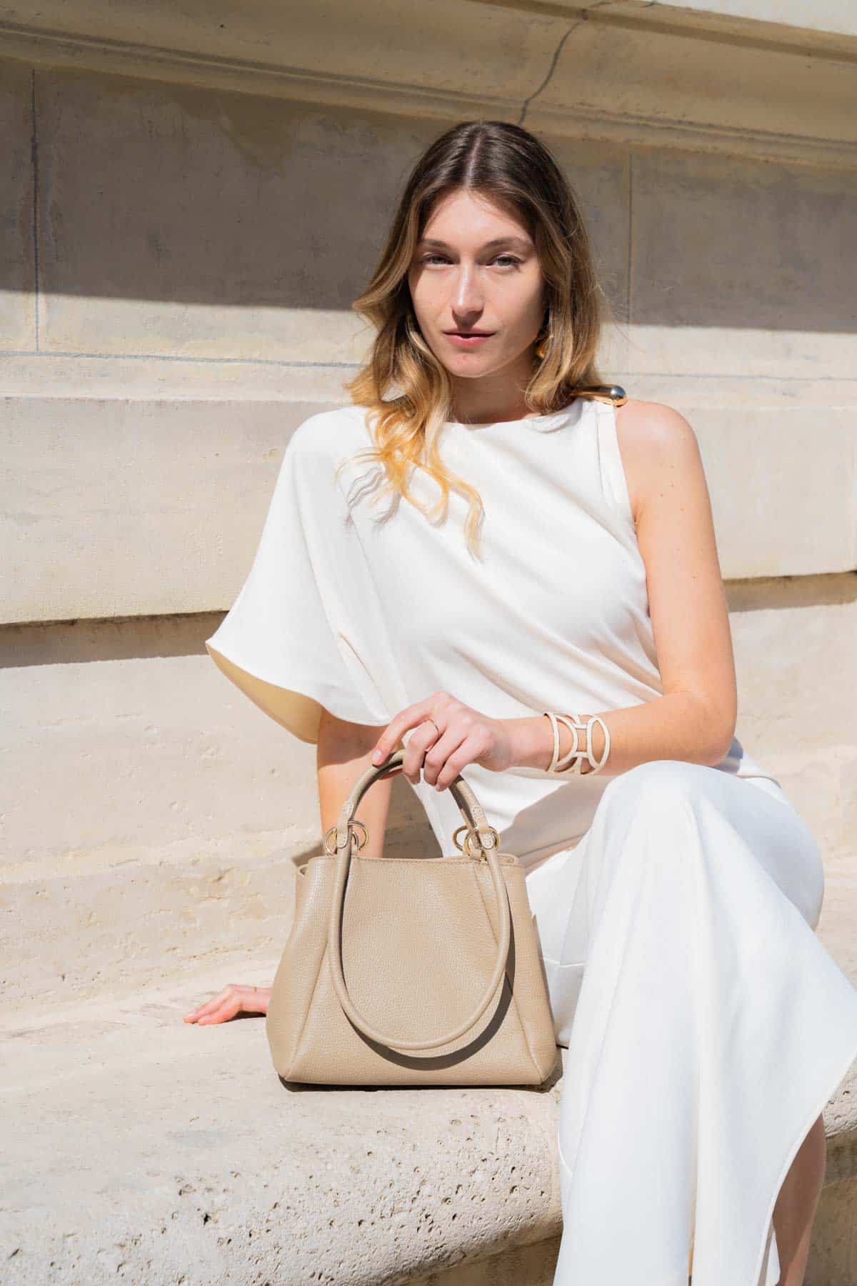 Découvrez le sac SONO, sa structure unique incarne l’élégance. Ilse distingue par la verticalité de ses anses qui allongent la silhouette. Portez-le à la main pour un effet graphique et moderne lors d’un rendez-vous professionnel, ou à l’épaule pour ponctuer une tenue. Sa structure sculpturale en fait un véritable objet de design qui sublime chaque allure.