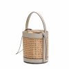Sac seau en cuir et toile porté épaule ou un porté en bandoulière.intérieur : Effet de pochon intérieur en toile + petite poche zippé + 2 poches à cartes
