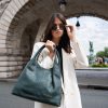 Sac à main, avec deux anses, une bandoulière ajustable et amovible, deux compartiments séparée par une poches à zip avec une poche intérieur au dos du sac à zip et un poche intérieur à l’avant, porte carte