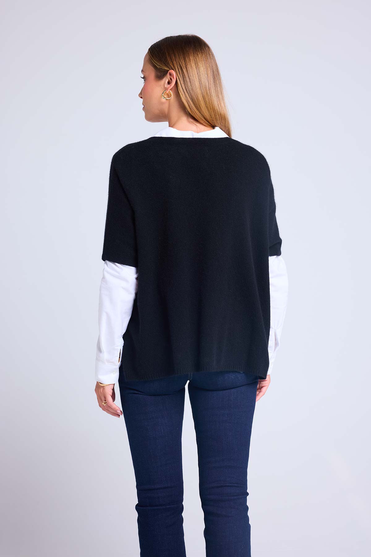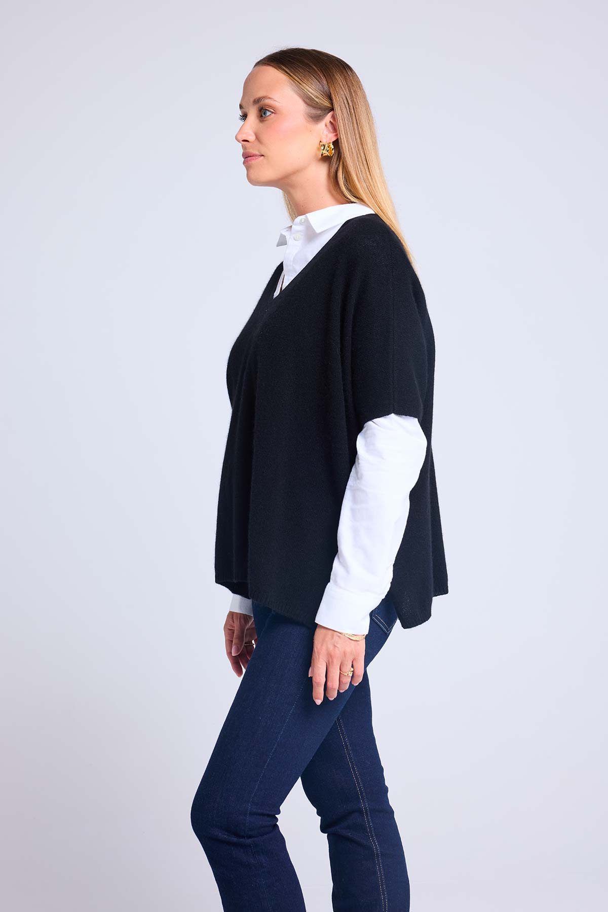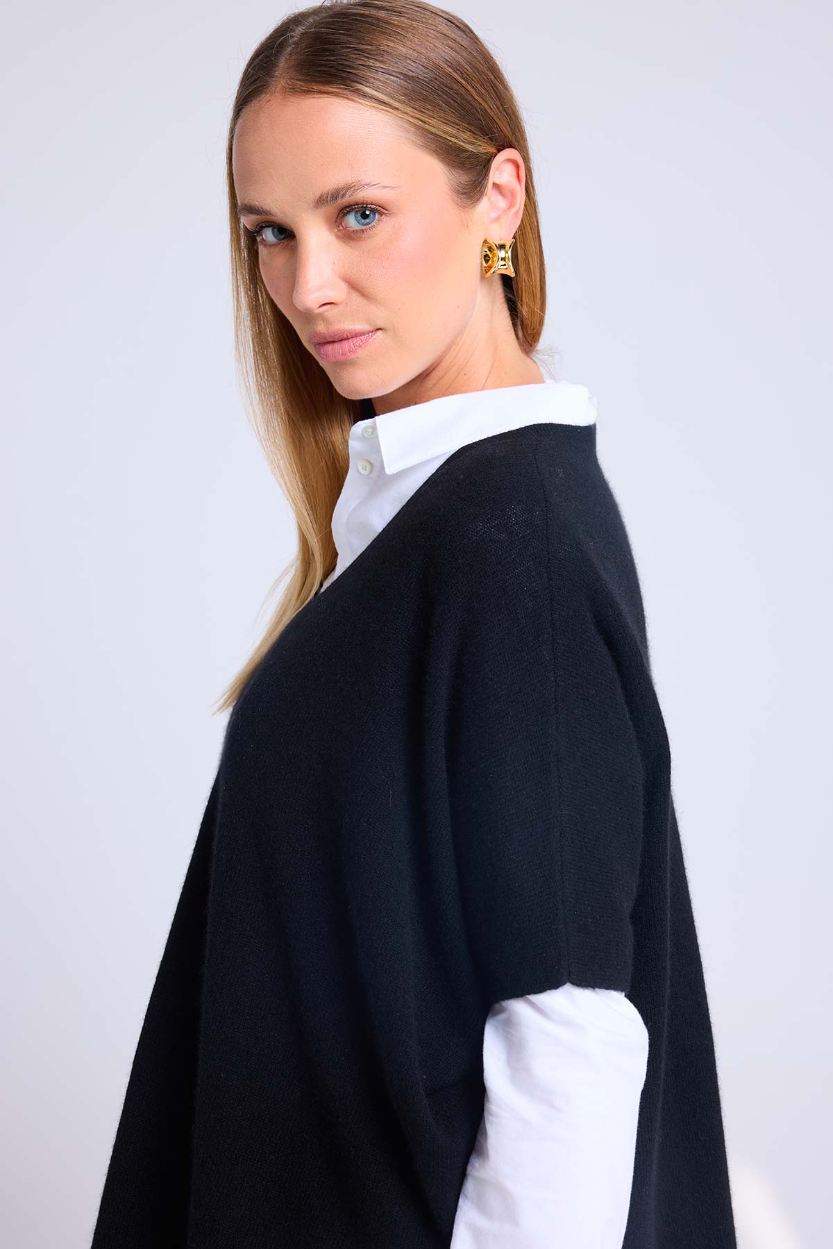 VANINA – Pull poncho sans manches col V en 100% cachemire