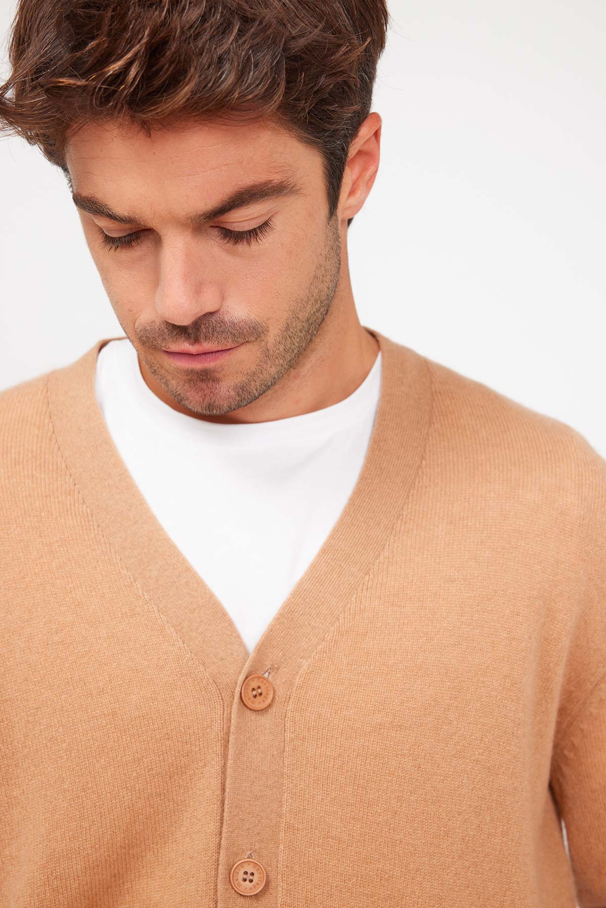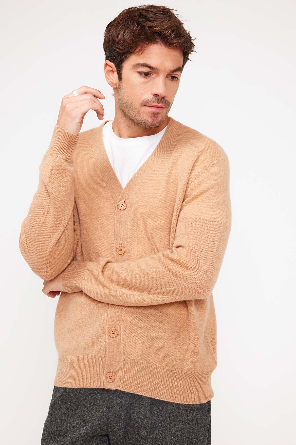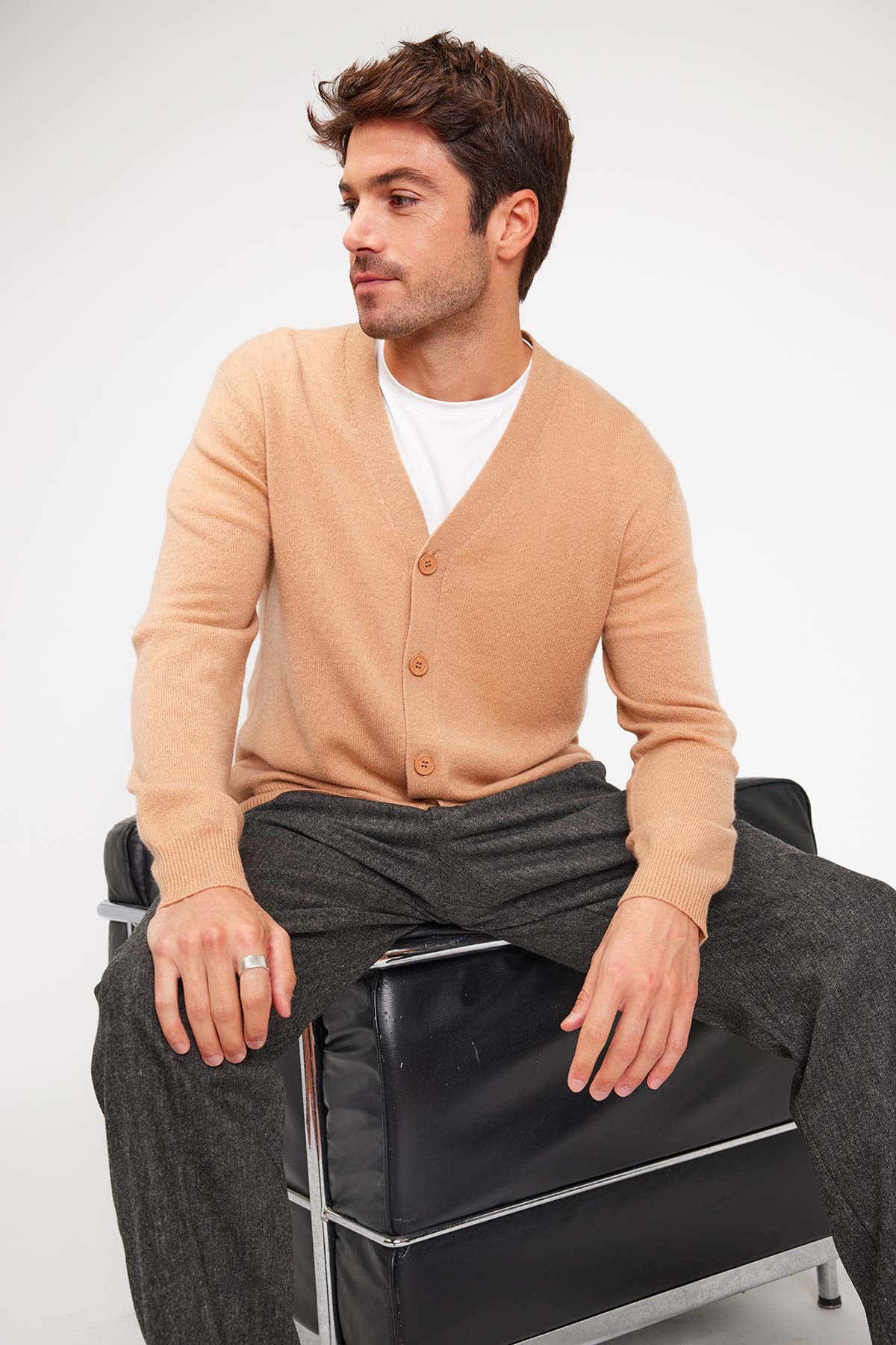 – cardigan encolure V peu profonde pour homme