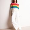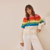 Jeu de couleurs pour ce pull confectionné en 100% cachemire, notre ZAIR au col rond, manches longues et bords côtelés, arbore des bandes multicolores qui embrassent délicatement le haut de votre allure. Audacieux et affirmé, mixez-le à une robe fluide ou un jean ample.