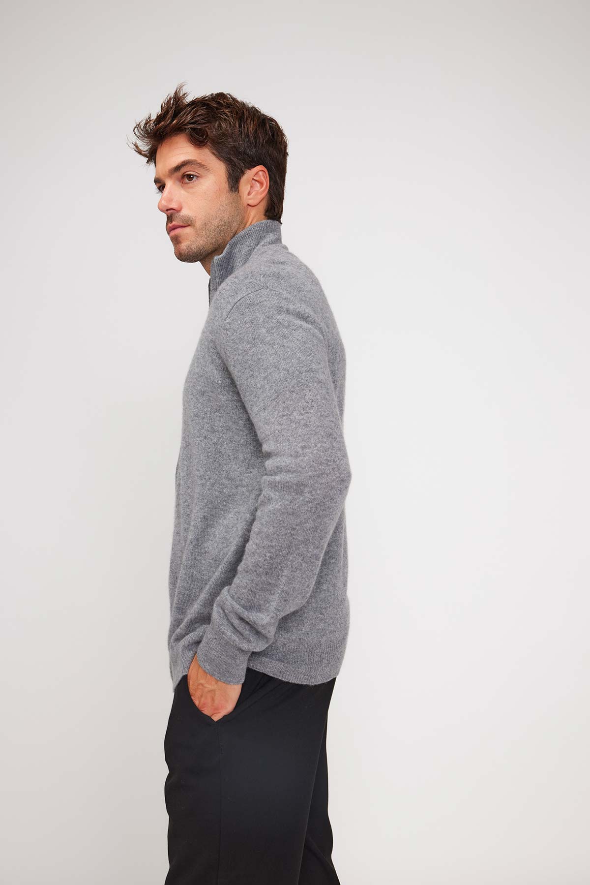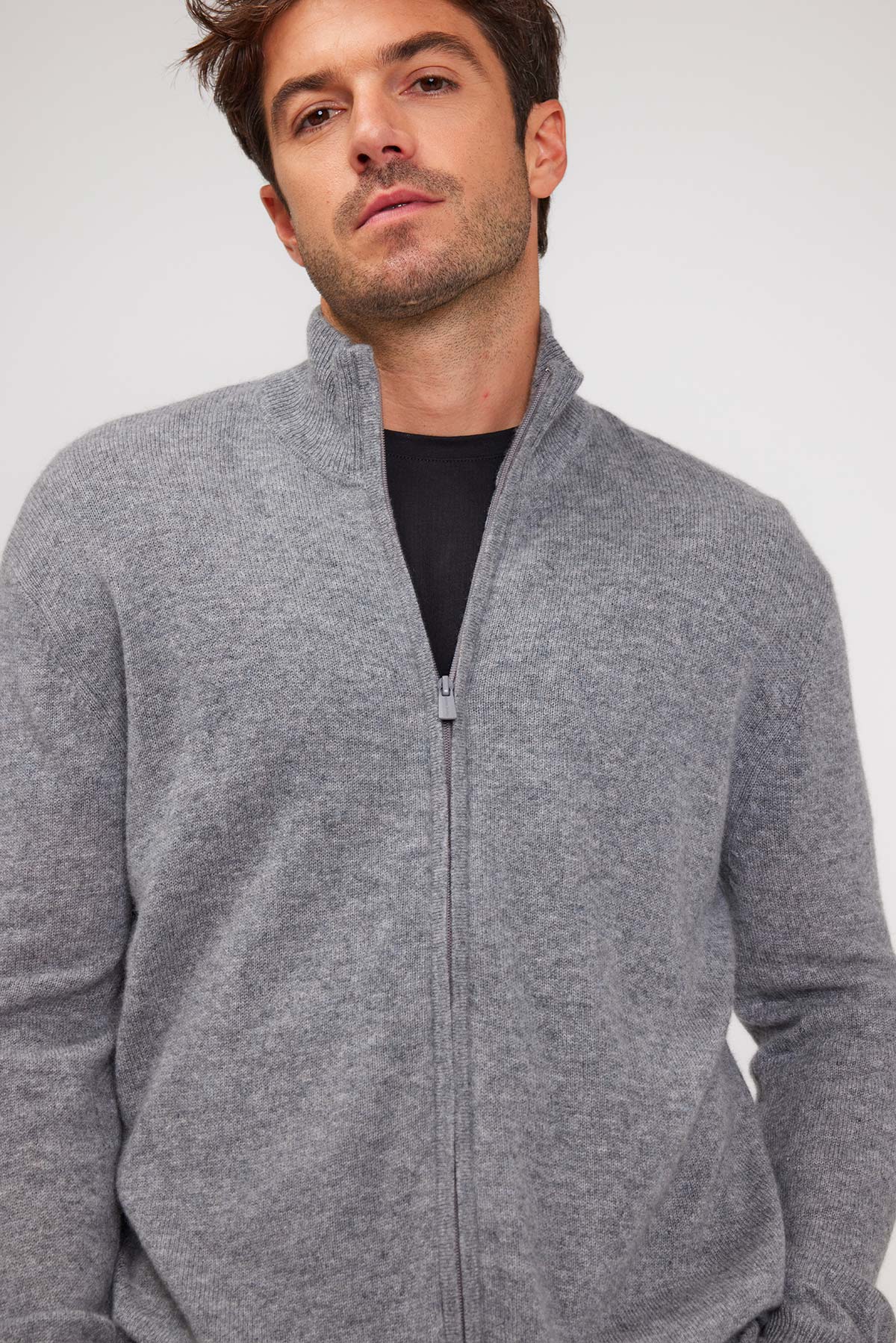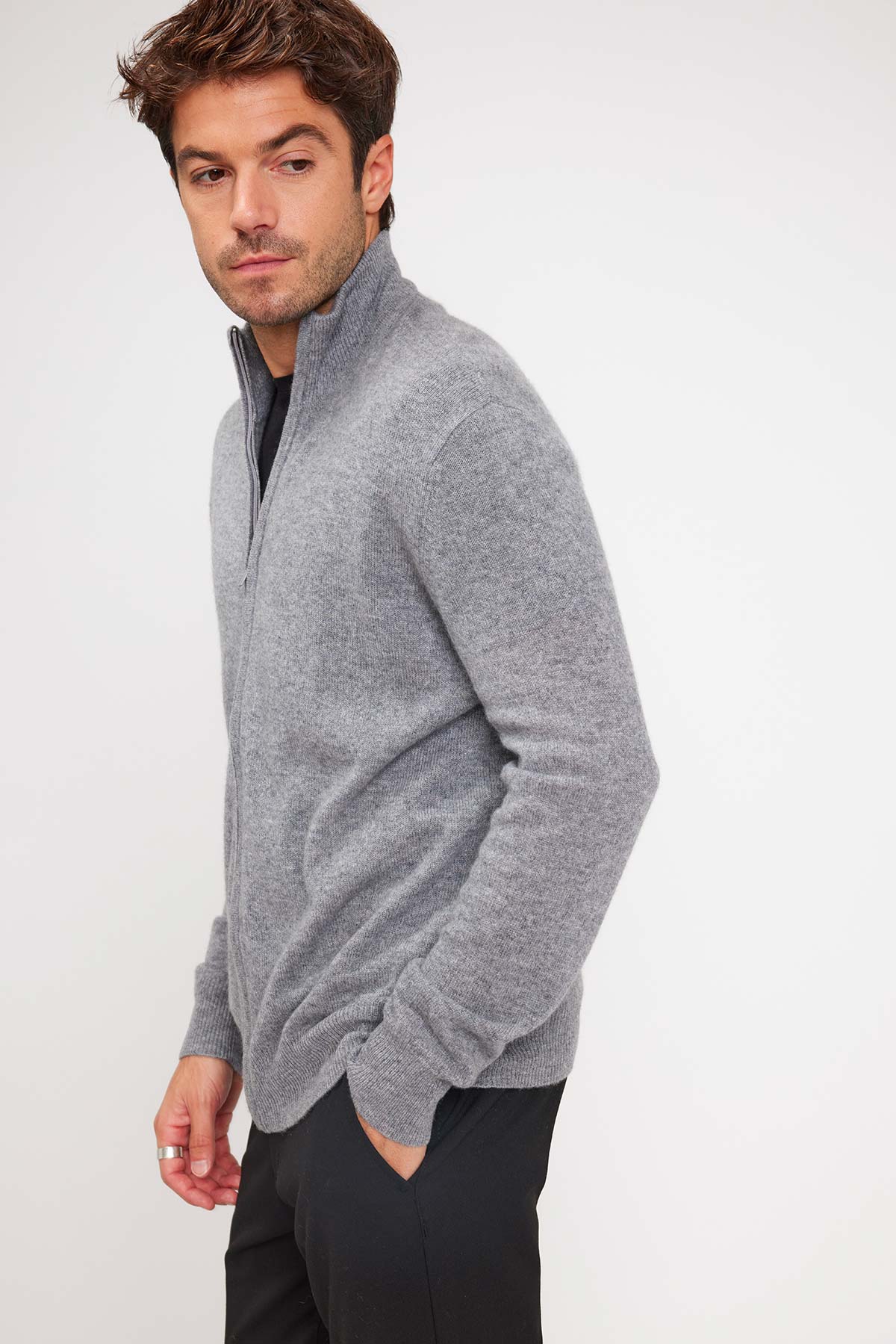 – Gilet zippé col montant 100% cachemire, 2 fils 12GG
