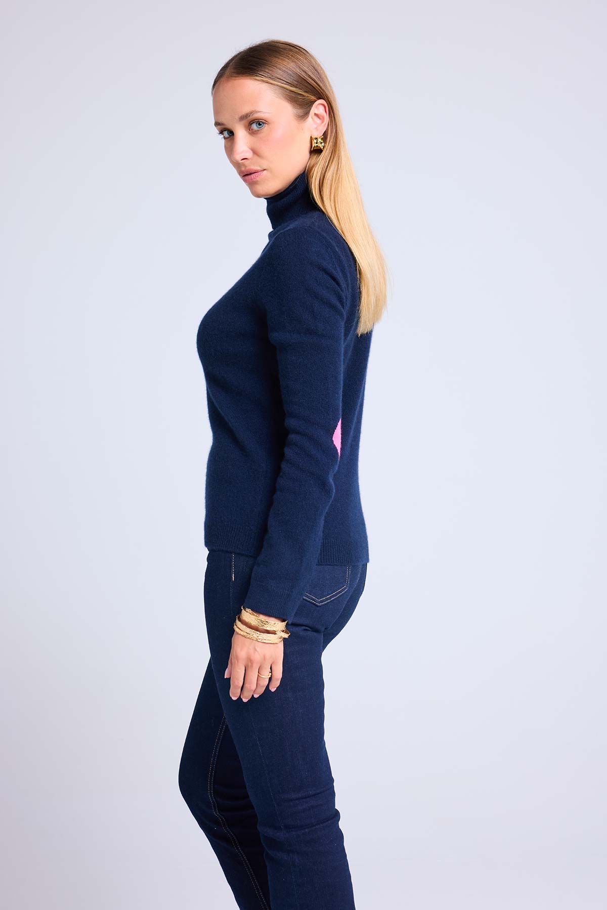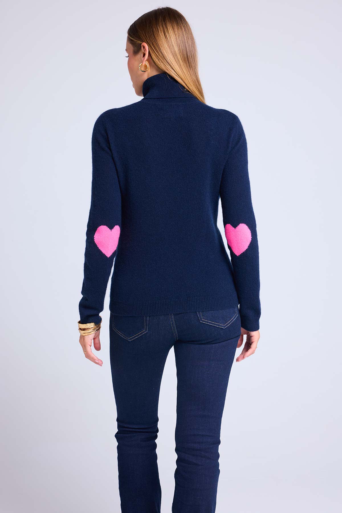 ZELLY – Pull col roulé en 100% cachemire avec cœurs aux coudes