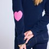Tricoté en 100% cachemire de Mongolie, 2 fils, jauge 12GG, il se distingue par ses coudes ornés d’un motif cœur en intarsia, clin d’œil graphique et élégant.