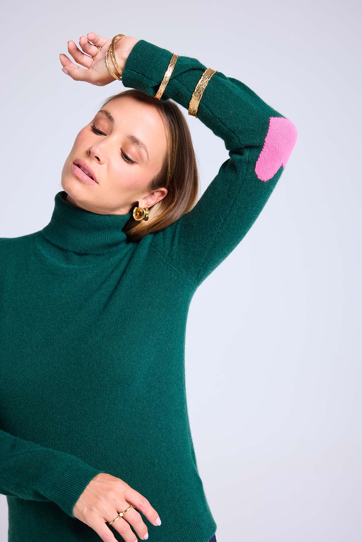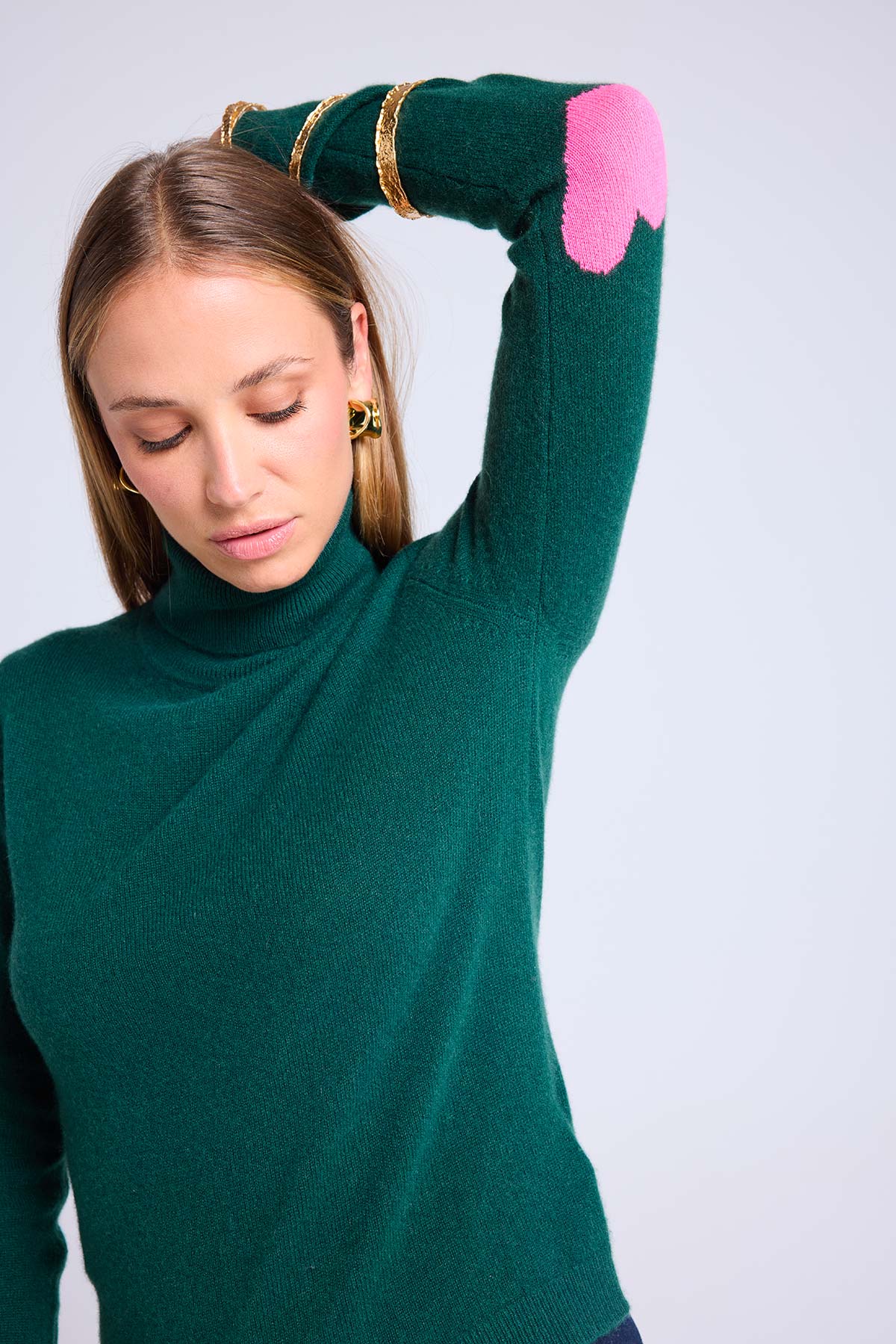 ZELLY – Pull col roulé en 100% cachemire avec cœurs aux coudes