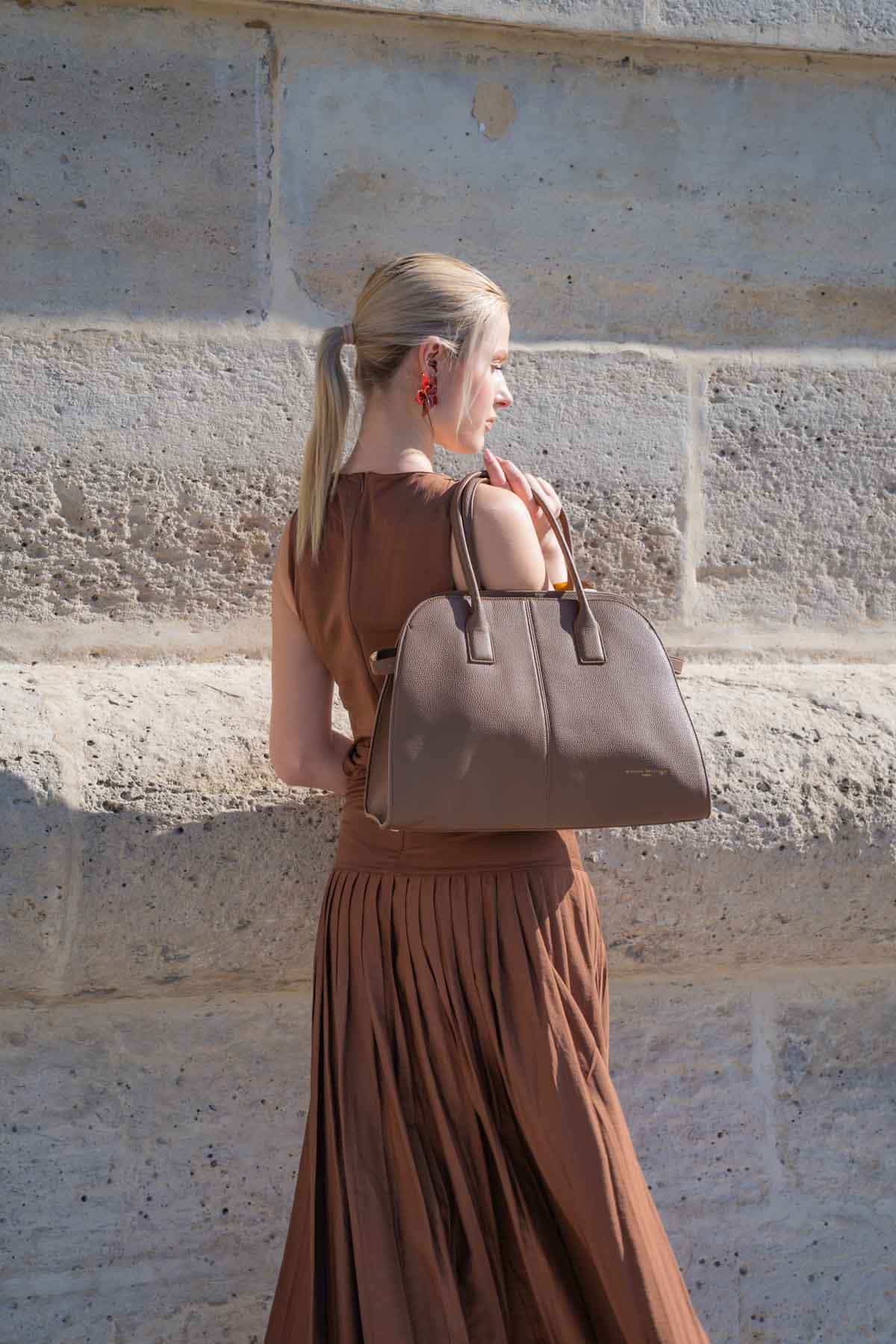Découvrez le sac ZENIT, une pièce de maroquinerie incontournable au design épuré. Ce sac à main aux proportions généreuses incarne l’élégance intemporelle. Le ZENITH est parfait pour vous siuvre tut au long de votre journée avec simplicité sophistication. Avec sa structure imposante et ses lignes harmonieuses, il devient l’accessoire signature pour un style affirmé et sans compromis.