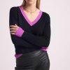 Arborant des manches longues et un col V, il affiche des manchettes et bords côtes aux couleurs vibrantes. Vous offrant une allure chic, vibrante, pleine de peps, il s’associe facilement à un jean décontracté ou une jolie jupe.