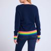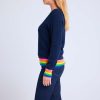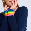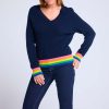 Muni d’un col V, de manches longues et de bords côtelés, des rayures colorées en arc en ciel viennent illuminer les bords côtes de notre ZORA. Une véritable touche de fraicheur, il s’associe aussi bien à un pantalon large, une jupe ou à un jean.