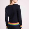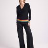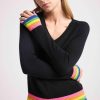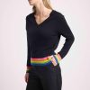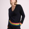 Muni d’un col V, de manches longues et de bords côtelés, des rayures colorées en arc en ciel viennent illuminer les bords côtes de notre ZORA. Une véritable touche de fraicheur, il s’associe aussi bien à un pantalon large, une jupe ou à un jean.
